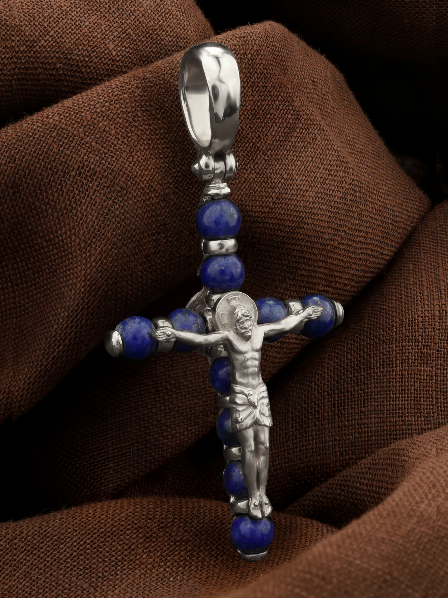 Крест из белого золота c лазуритом