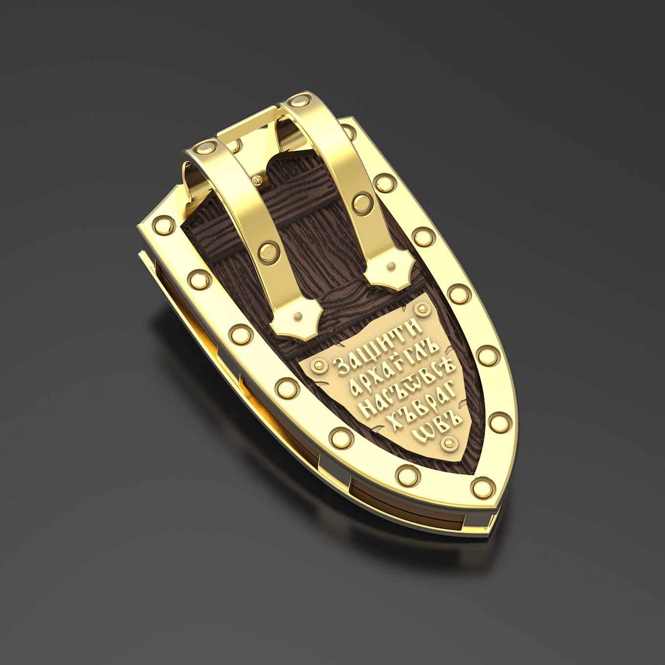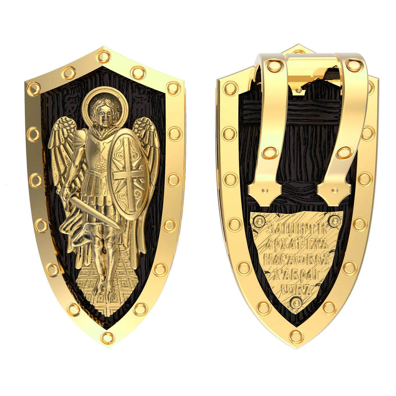 На лицевой стороне образка изображение Архангела Михаила — верного служителя Божия, который низринул с Неба возгордившегося денницу с другими павшими духами. В Православии его называют Архистратигом, что означает глава святого воинства Ангелов и Архангелов. Образок сделан в виде воинского щита. Архангел Михаил изображен в воинственном виде с огненным мечом в правой руке и щитом в левой. Архангел почитается как покровитель воинов и всех верных Богу и ведущих борьбу против сил зла, борец против ересей, а также защитник душ умерших, страж райских врат. С древних времен прославлен своими чудесами Архангел Михаил на Руси. Примеров явления и помощи Архистратига Михаила в русской истории бессчетно. Архангел Михаил не перестает ратоборствовать за славу Творца и Господа всяческих, за дело спасения рода человеческого, за церковь и чад ее. И, согласно, Откровению Иоанна Богослова во время последней битвы небесных и дьявольских сил Михаил и его ангелы опять низвергнут Люцифера вместе с его войском: «Михаил и Ангелы его воевали против дракона, и дракон и ангелы его воевали [против них], но не устояли, и не нашлось уже для них места на небе. И низвержен был великий дракон, древний змий, называемый диаволом и сатаною, обольщающий всю вселенную, низвержен на землю, и ангелы его низвержены с ним» (Откр.12:7−9).