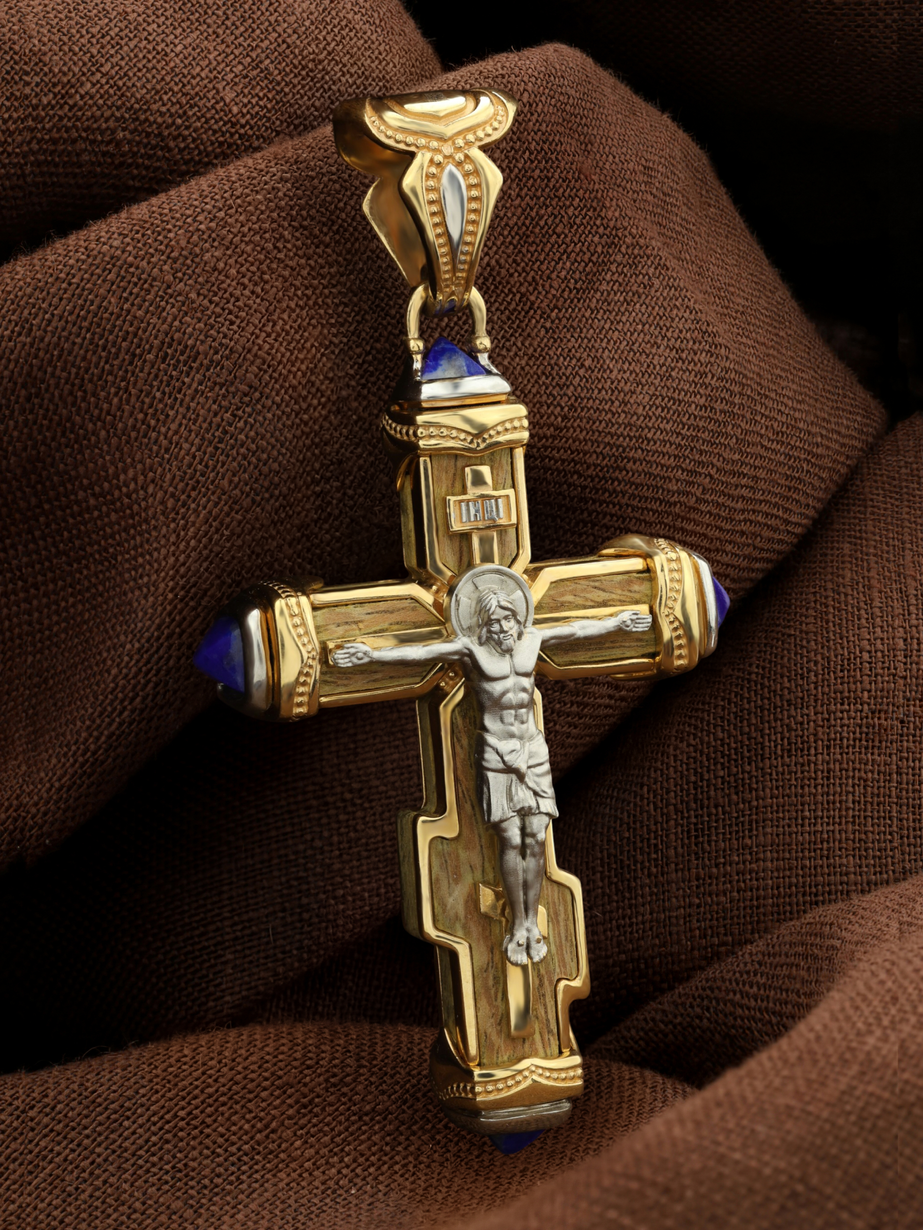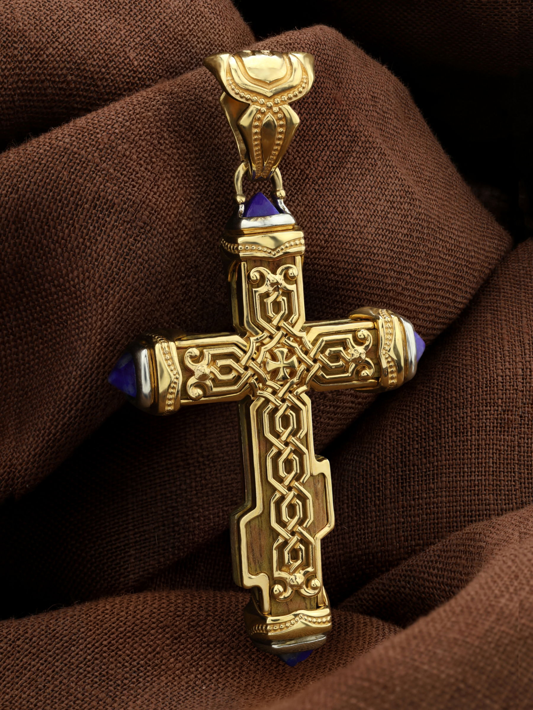 Крест из лимонного золота c лазуритом и железным деревом