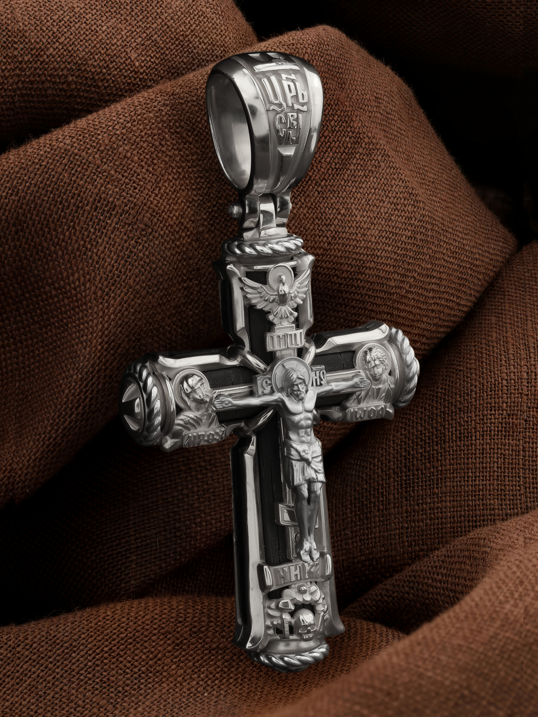 Крест из белого золота c эбеновым деревом