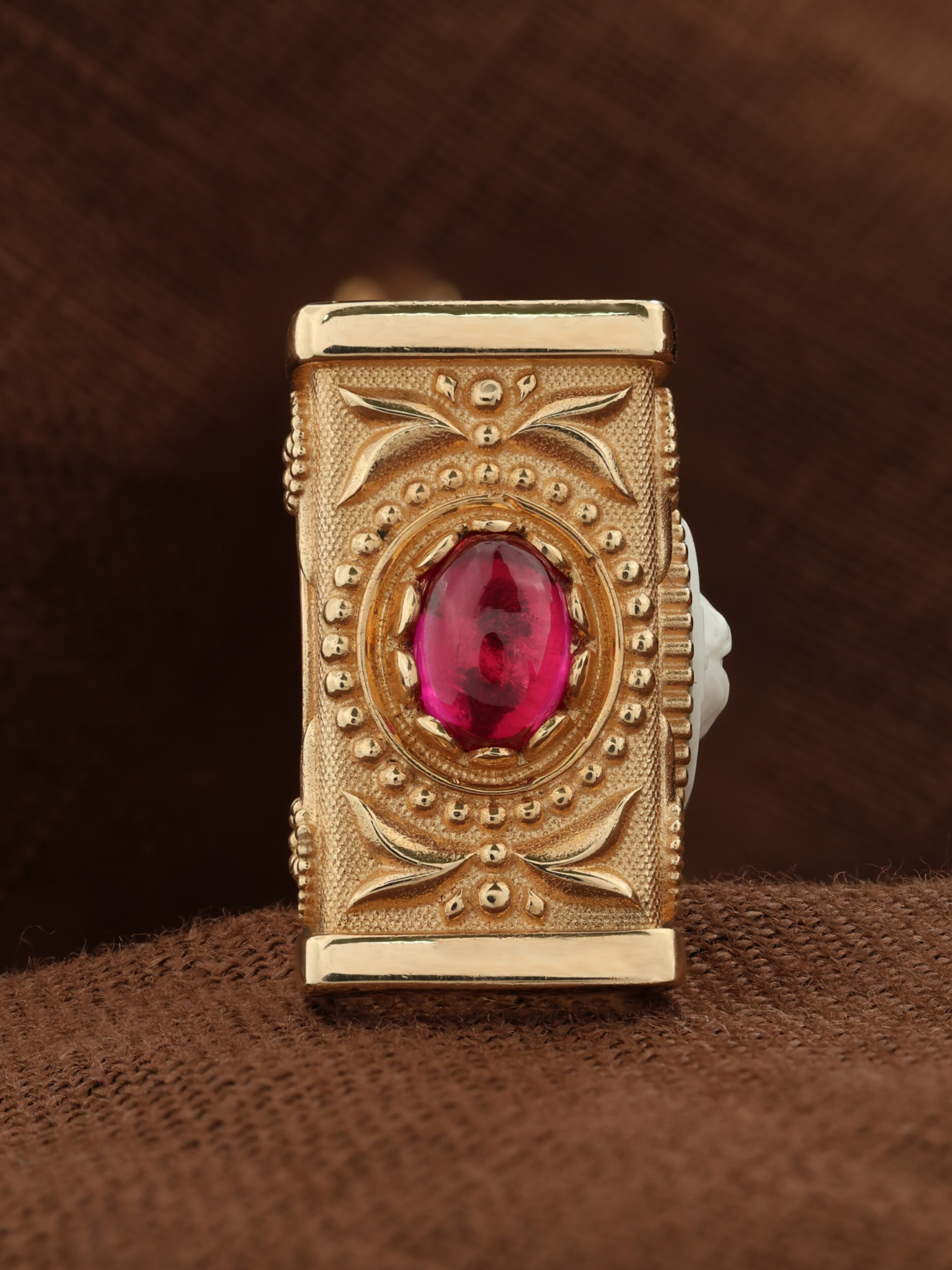 Образок из золота c эмаль, рубином и бивнем мамонта