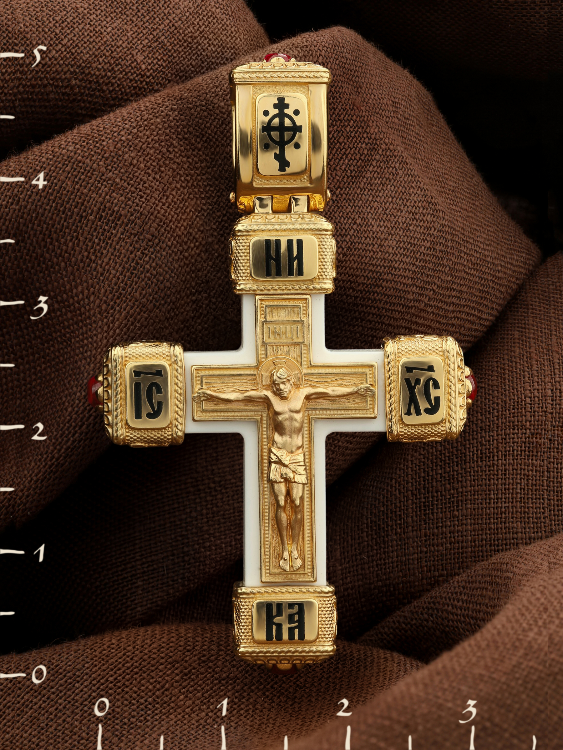 Крест из лимонного золота c эмаль, рубином и бивнем мамонта