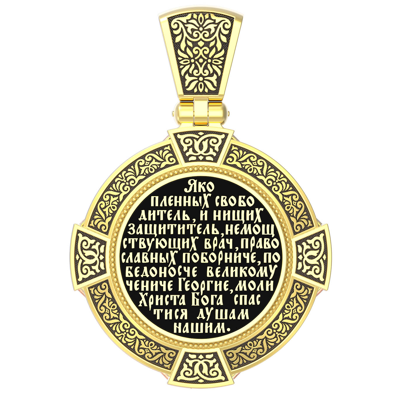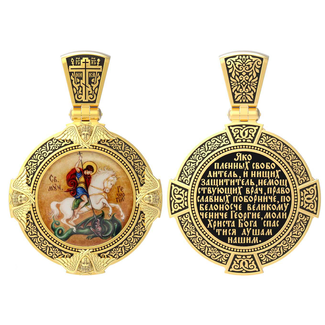 На обороте написана молитва"Яко пленных свободитель, и нищих защититель, немощствующих врач, православных поборниче, победоносче великому чениче Георгие, моли Христа Бога спастися душам нашим.»