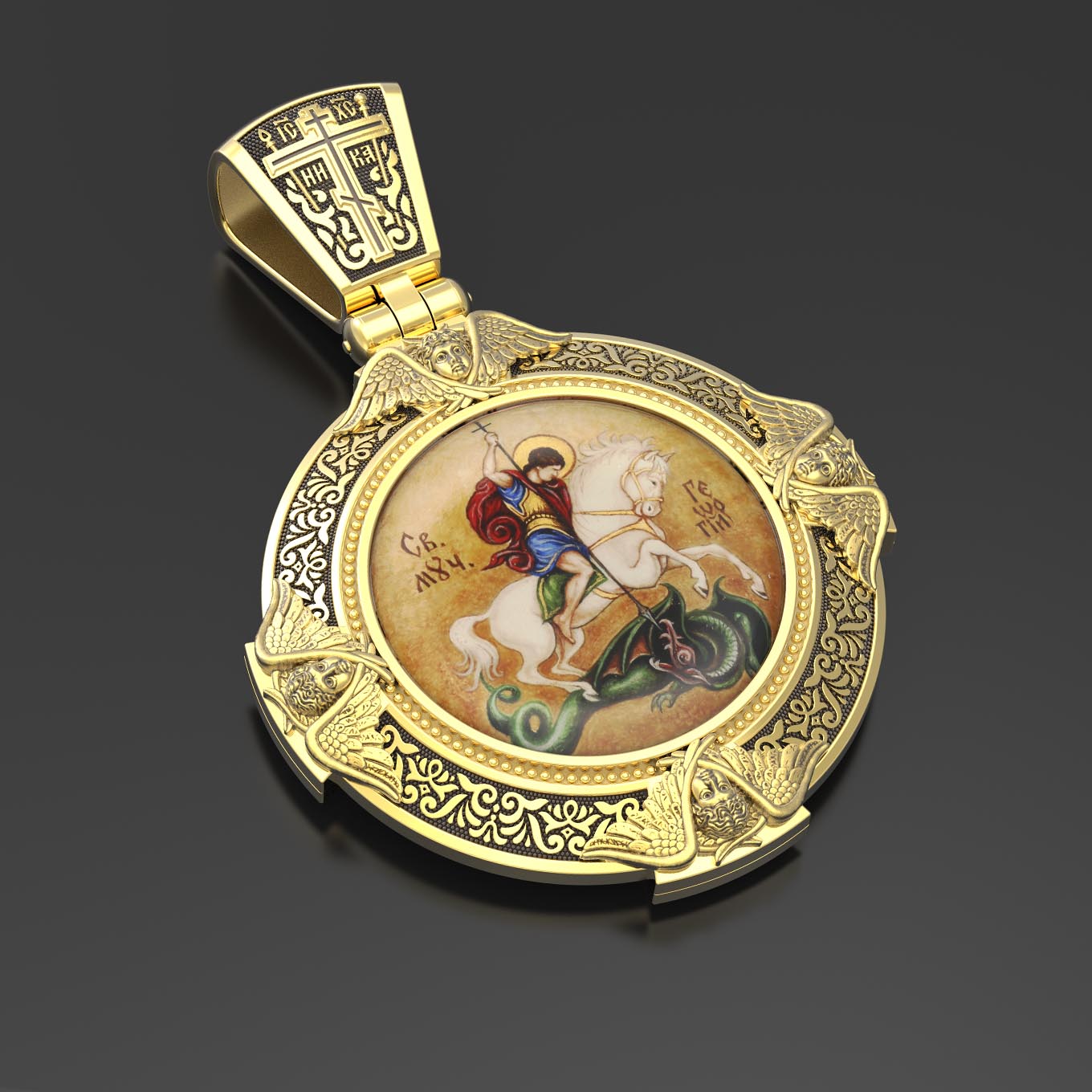 Образок из лимонного золота c эмаль, иконописью и темперой