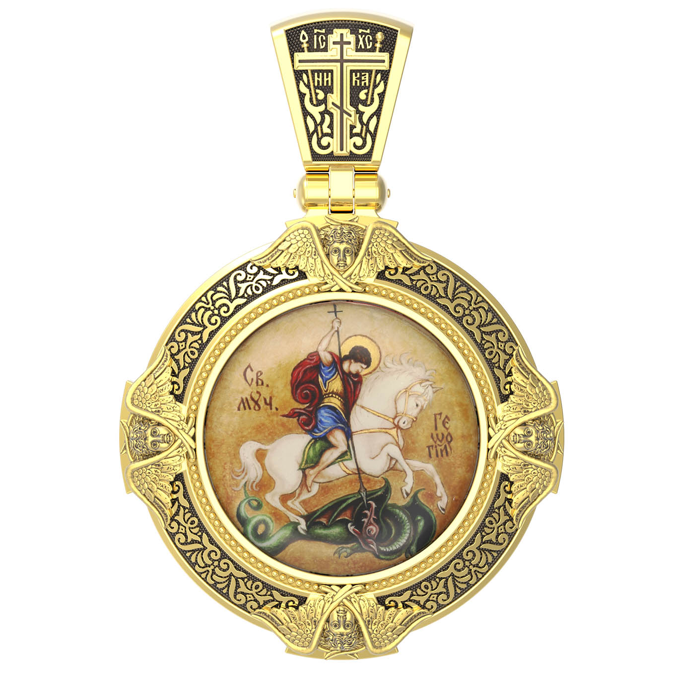 Образ Великомученика считают одним из наиболее чтимых Святынь, в Святыни Православных он олицетворяет собой заступника для верующих, чья жизнь имеет какое-либо отношение к военным делам, также он может оберегать и землевладельцев. Одно из самых великих чудес которое сотворил Великомученик так это — спасения всего города от устрашающего змия. Молитвами и своей непреклонной верой, взываемой к Всевышнему, он смог одолеть чудовище. Святой убил змея, спас жителей и их души от влияния дьявола, породив в них надежду и веру в Господа, призывая людей принять христианскую веру. Поскольку при жизни Святой Георгий был военным, он считается покровителем всех, кто имеет отношение к армии — военнослужащим, участникам боевых действий. Молитва перед иконой Георгия Победоносца поможет защититься от врагов, одержать победу в сражении (военном, спортивном, духовной брани с дьяволом), содействие в установлении мира между членами семьи, избавиться от телесного недуга.