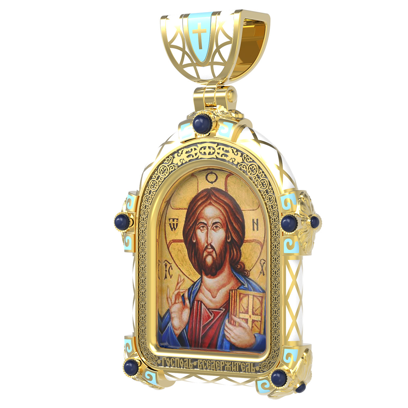 Образок из лимонного золота c эмаль, иконописью и темперой