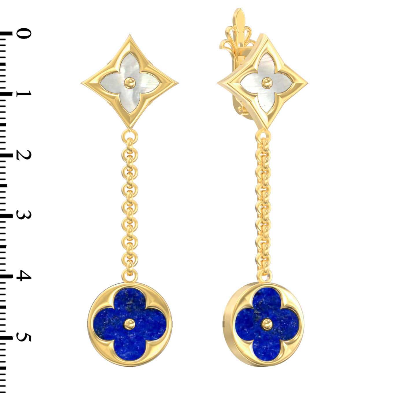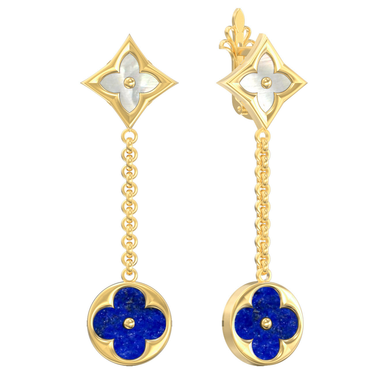 Серьги из лимонного золота c лазуритом и перламутром