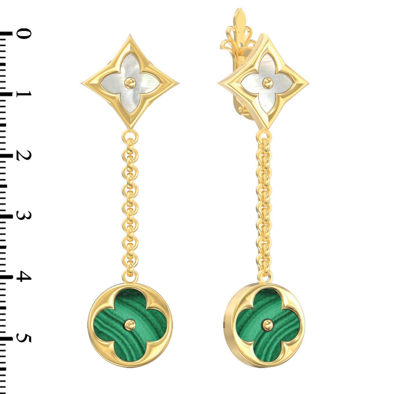 Серьги из лимонного золота c малахитом и перламутром