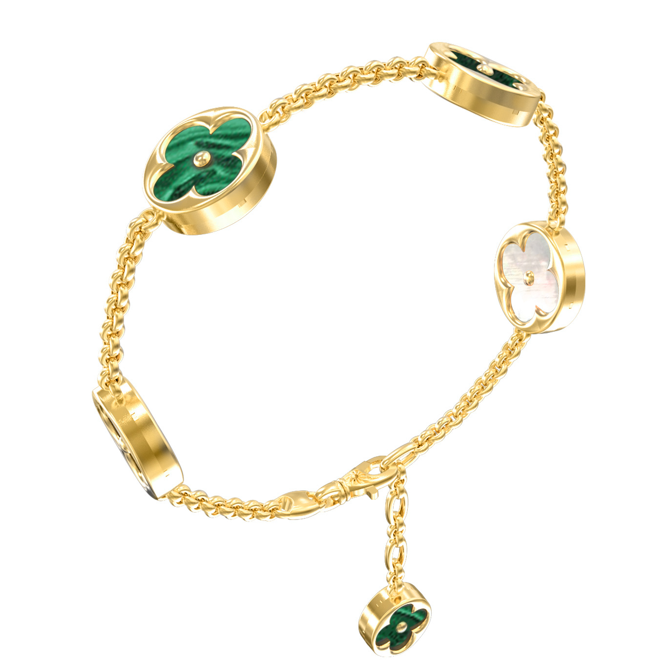 Браслет из лимонного золота c малахитом и перламутром