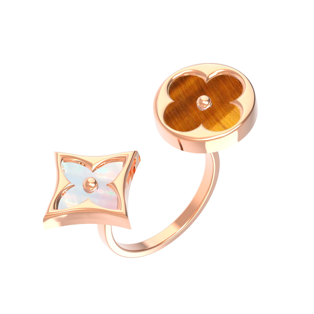 Кольцо из золота c тигровым глазом и перламутром