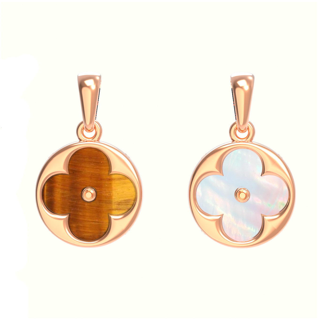 Подвеска из золота c тигровым глазом и перламутром