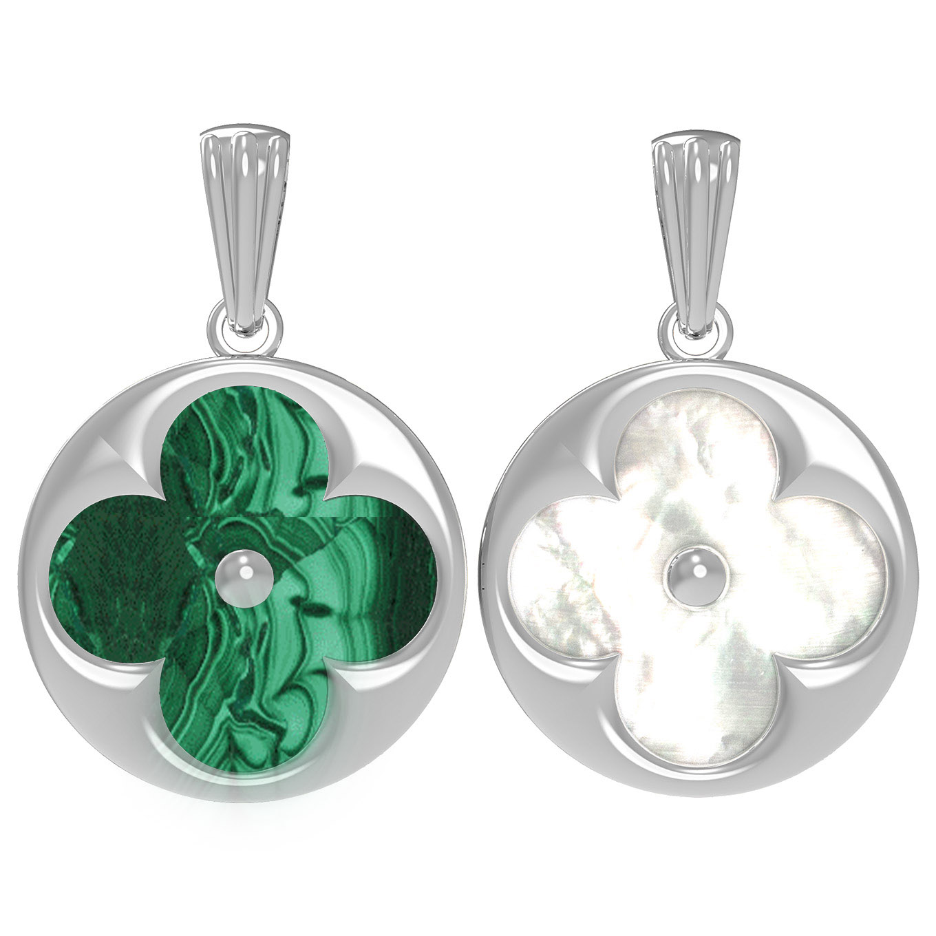Подвеска из белого золота c малахитом и перламутром