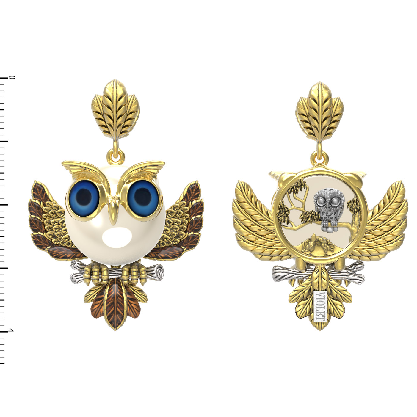 Подвеска из лимонного золота c эмаль и жемчугом