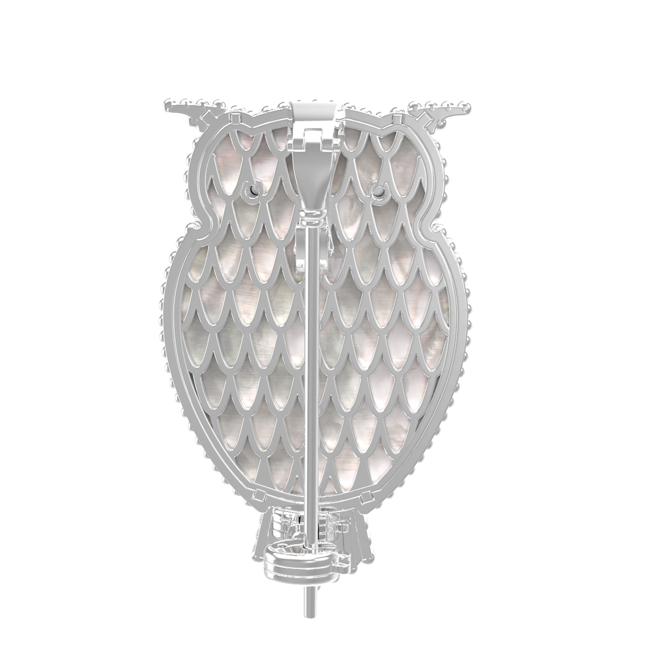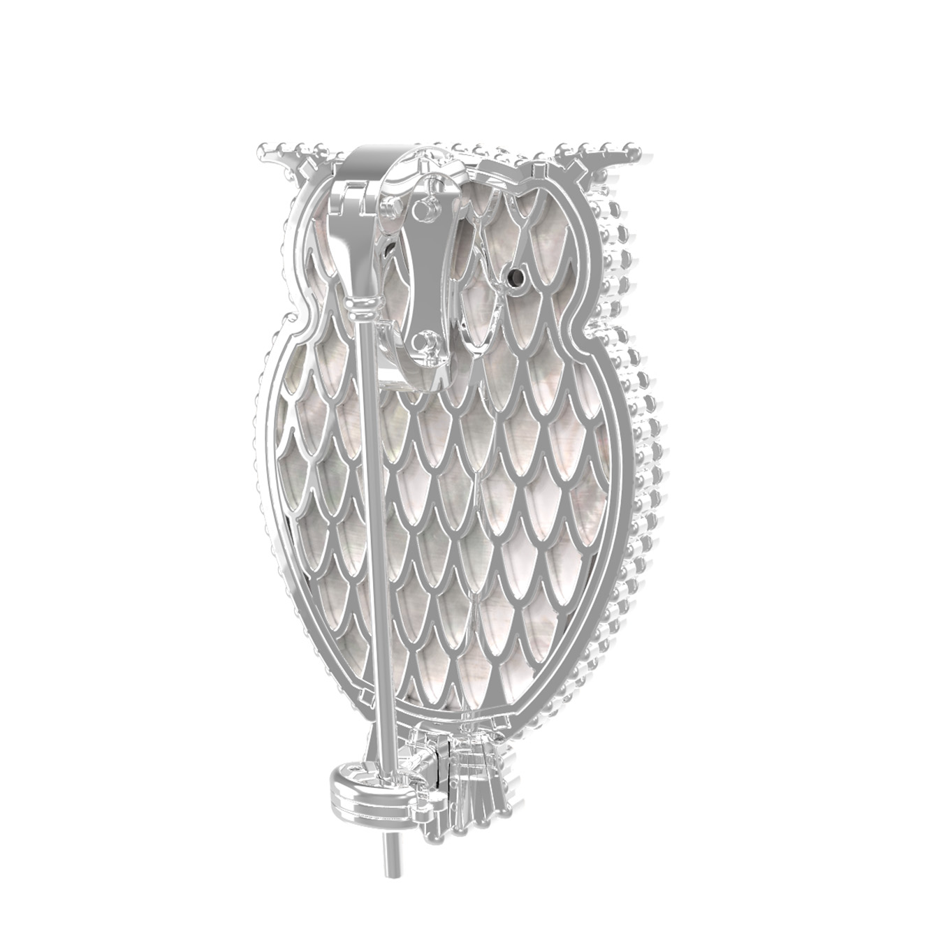 Брошь из белого золота c эмаль, ониксом и перламутром