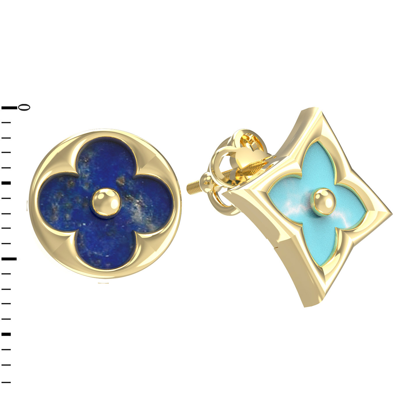 Серьги из лимонного золота c бирюзой и лазуритом