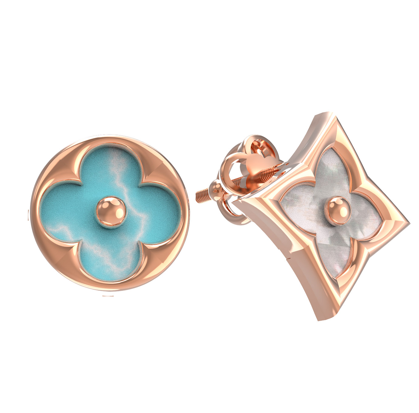 Серьги из золота c бирюзой и перламутром