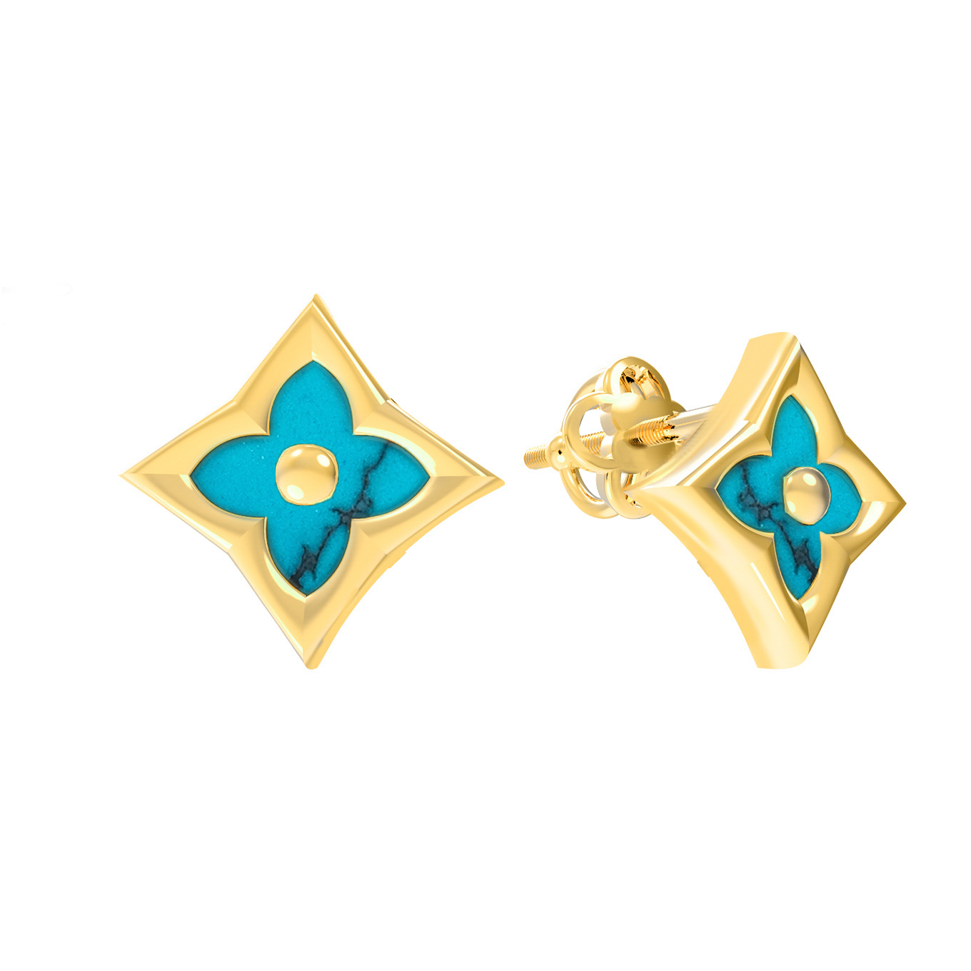 Серьги из лимонного золота c бирюзой