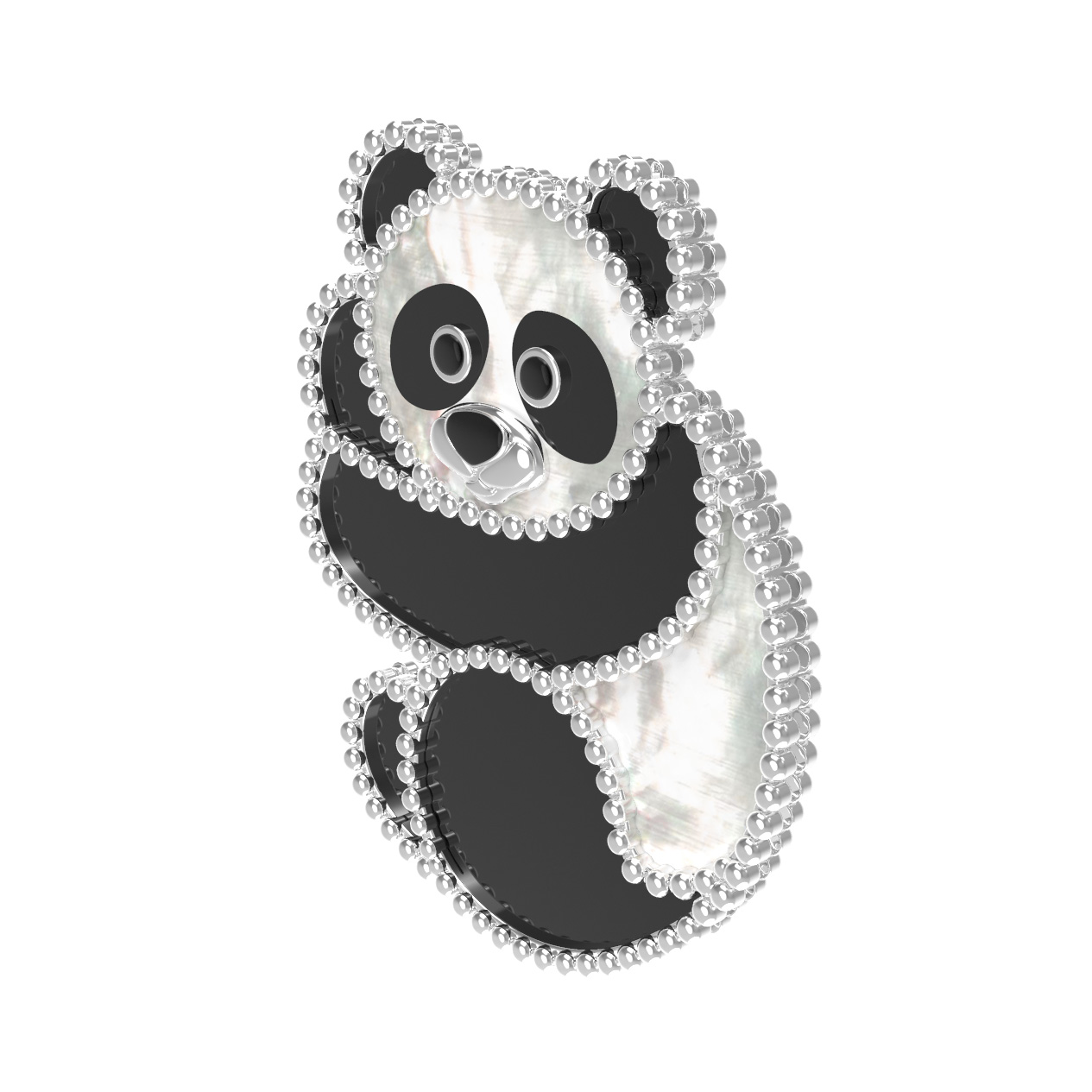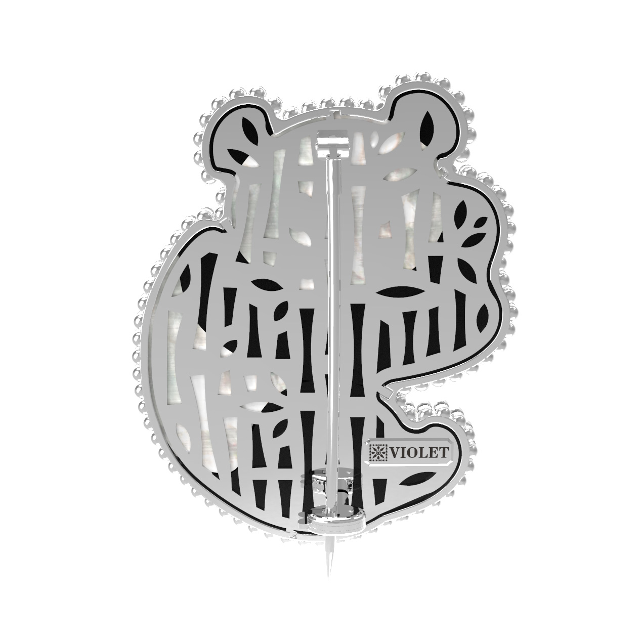 Брошь из белого золота c эмаль, ониксом и перламутром