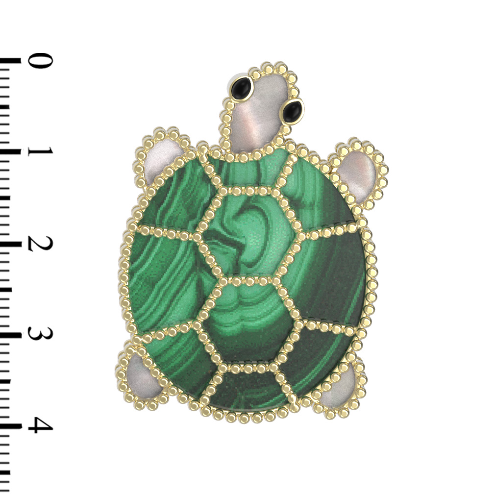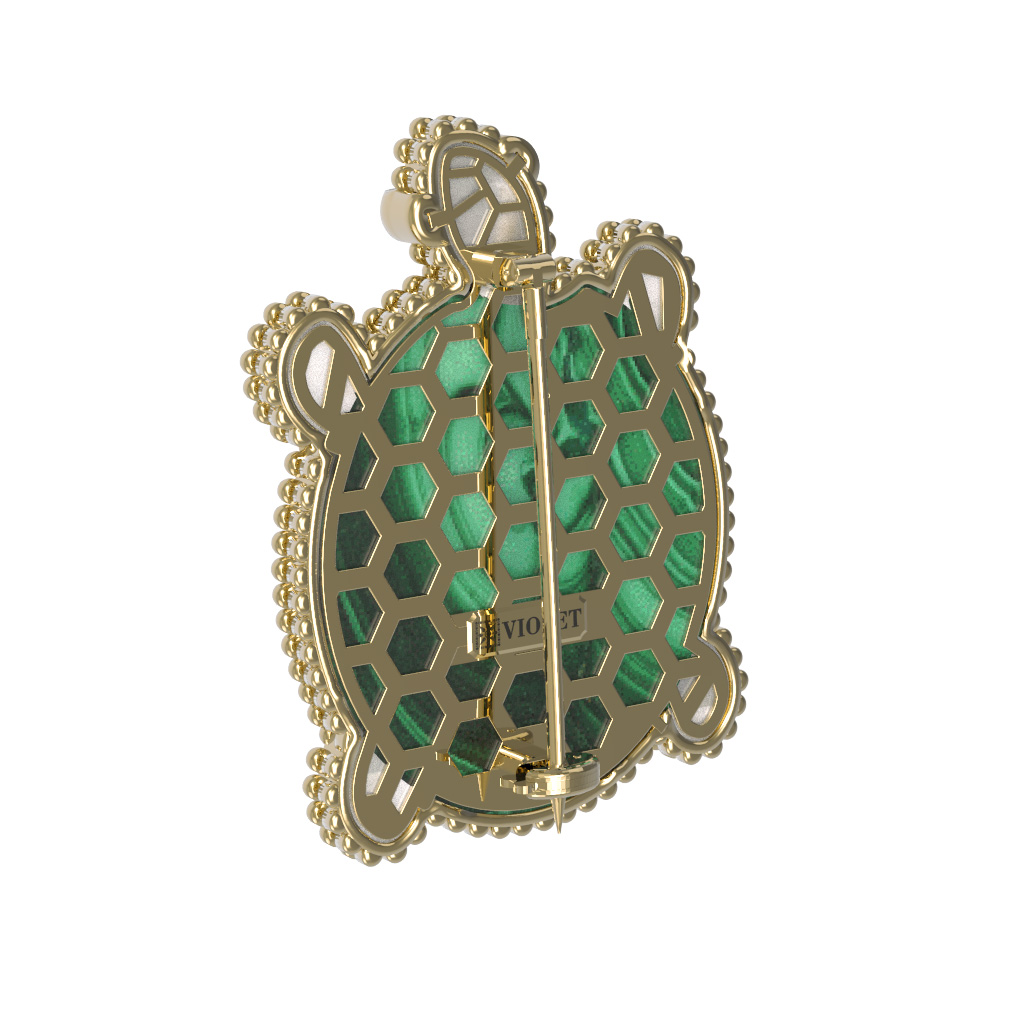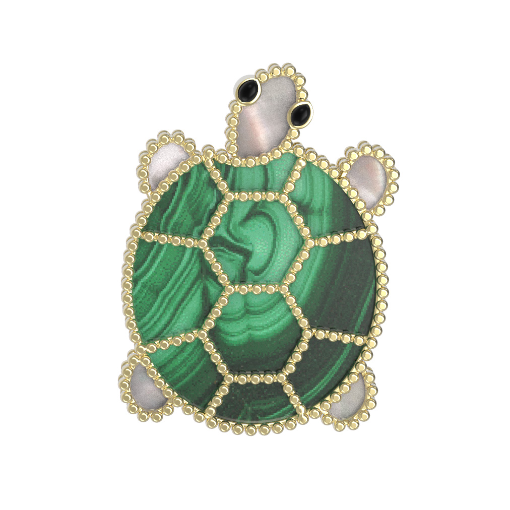 Брошь из лимонного золота c эмаль, малахитом и перламутром