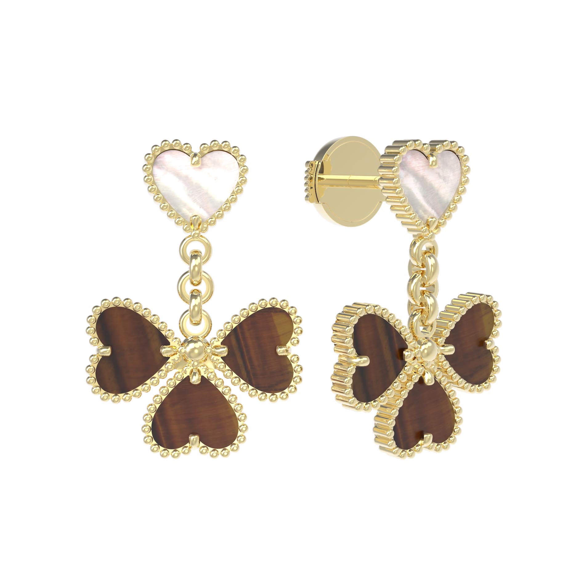 Серьги из лимонного золота c тигровым глазом и перламутром