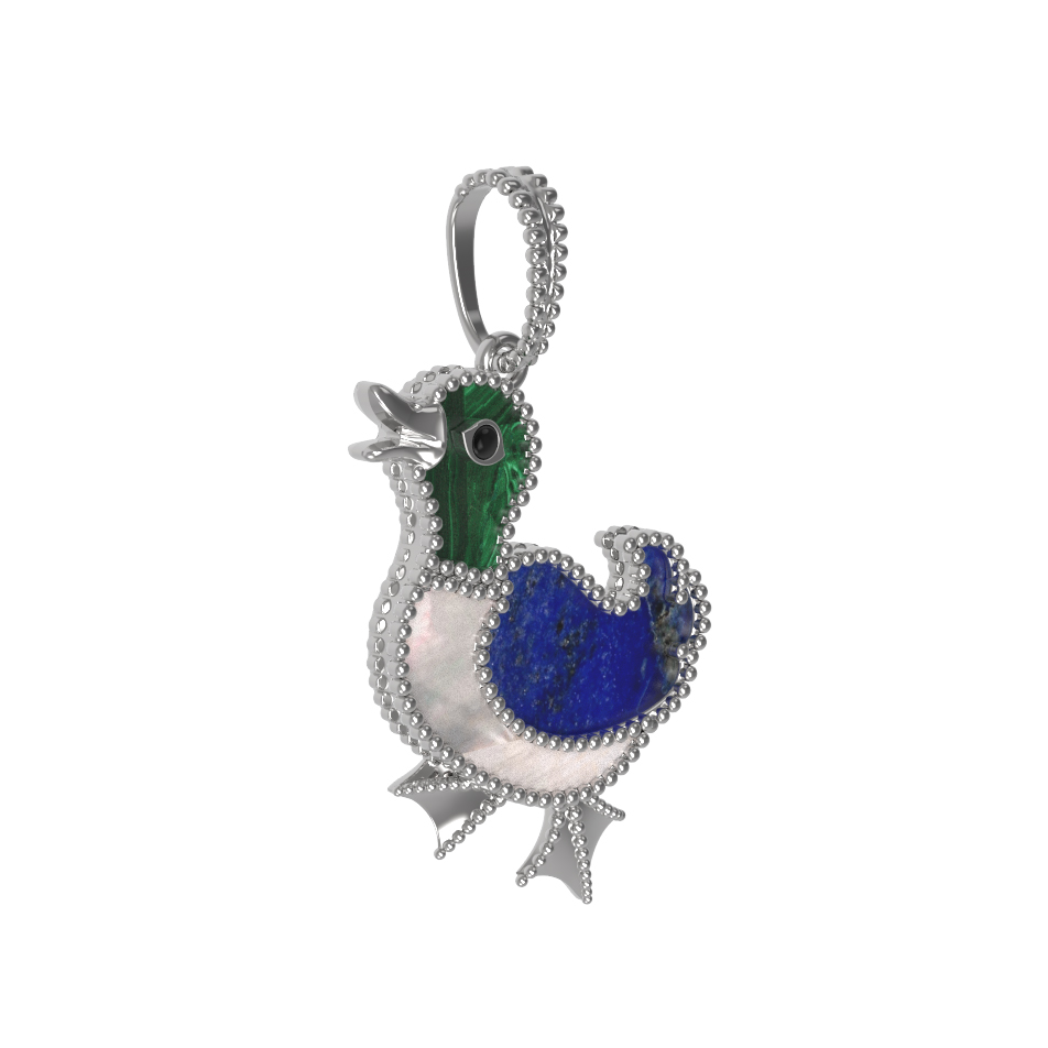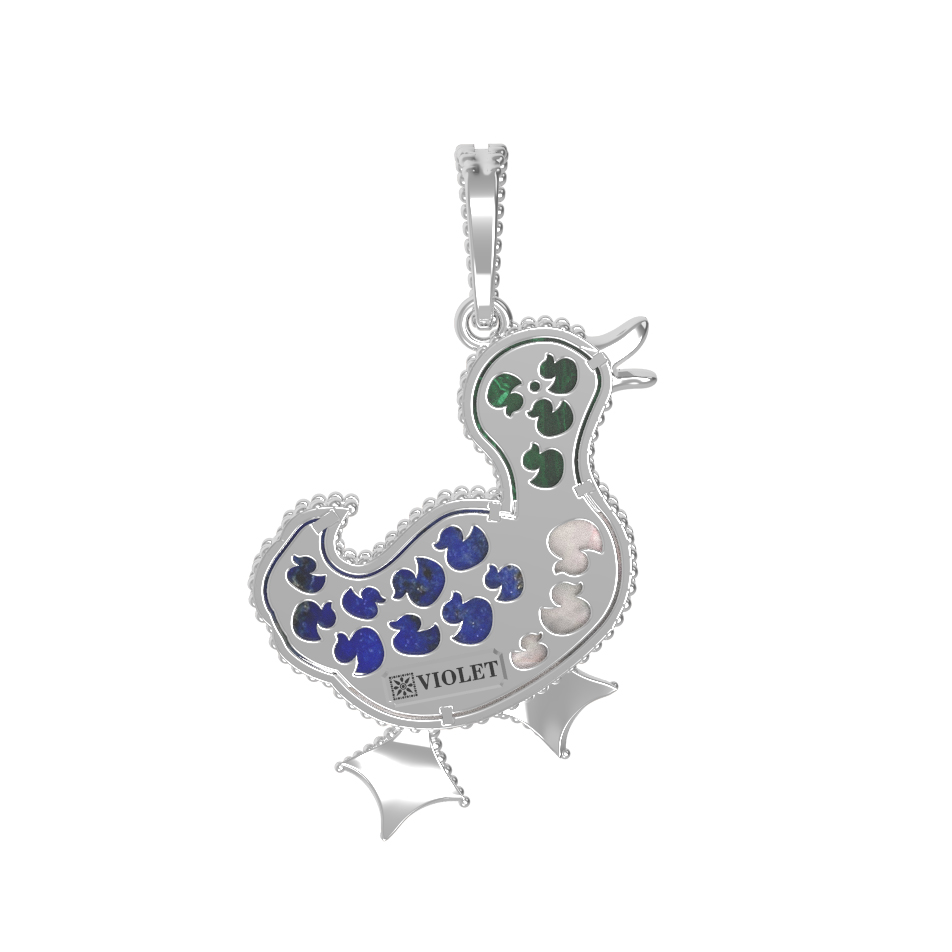Подвеска из белого золота c эмаль, лазуритом, малахитом и перламутром