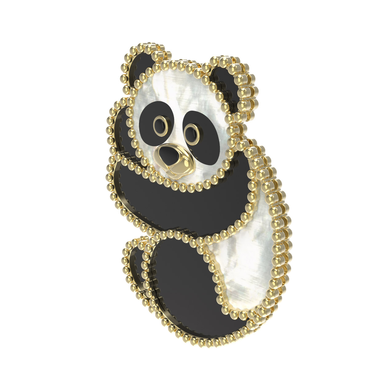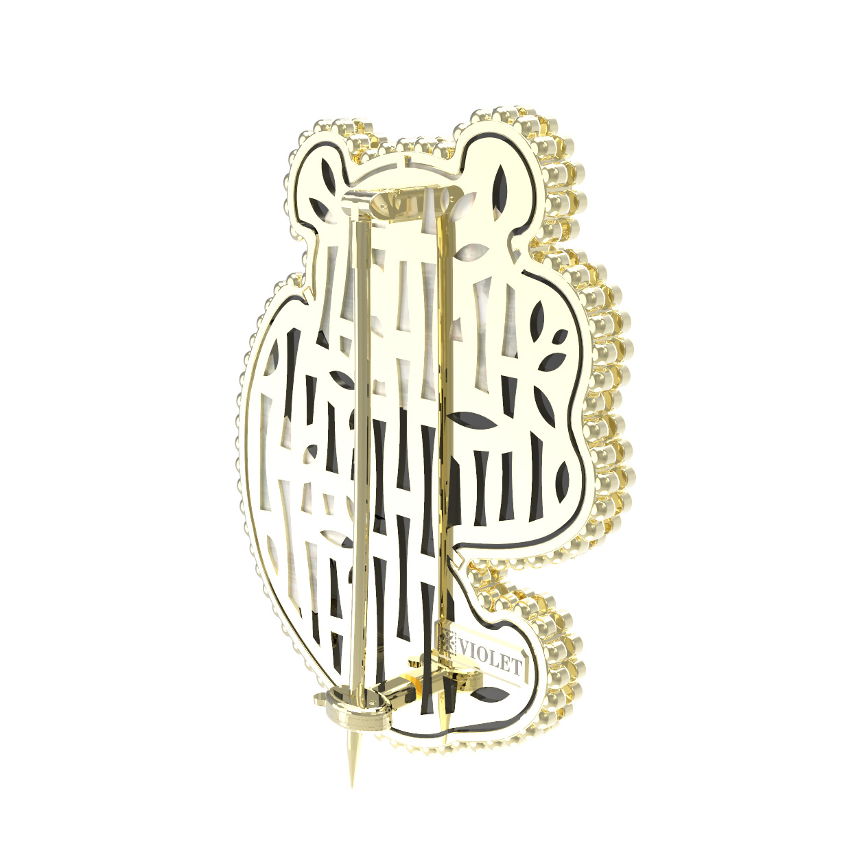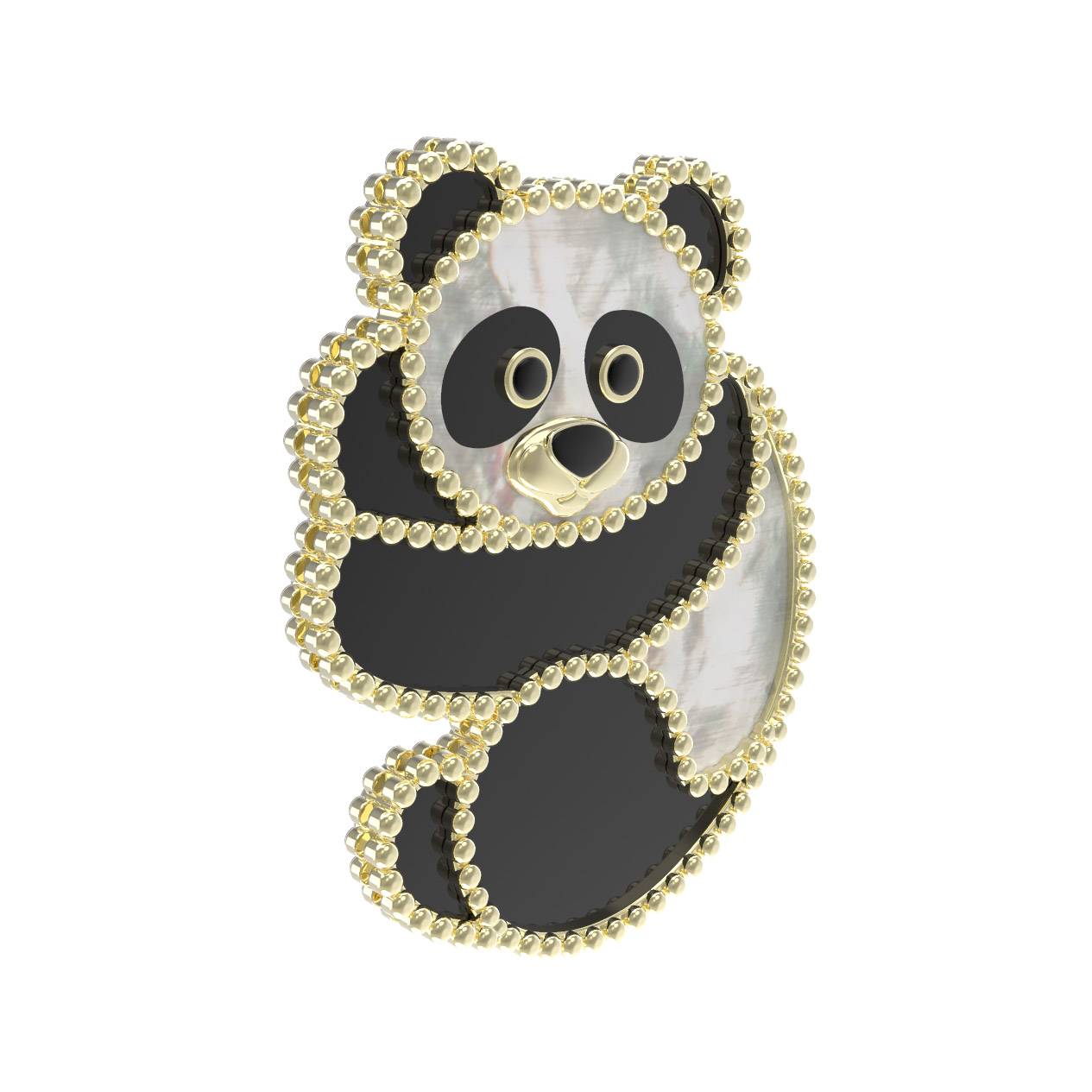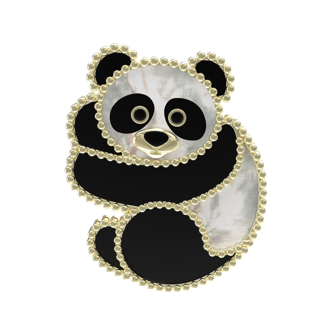 Брошь из лимонного золота c эмаль, ониксом и перламутром