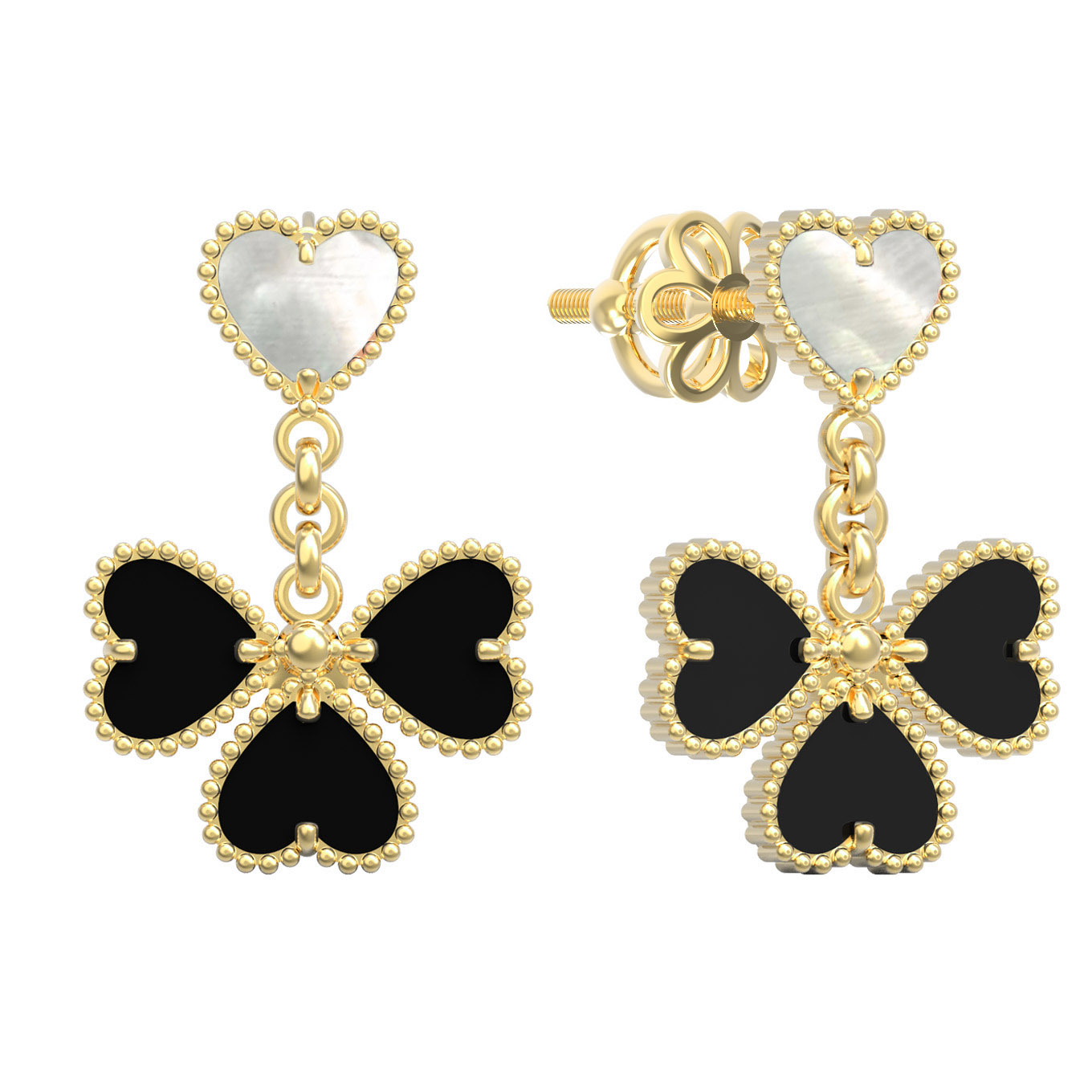 Серьги из лимонного золота c ониксом и перламутром