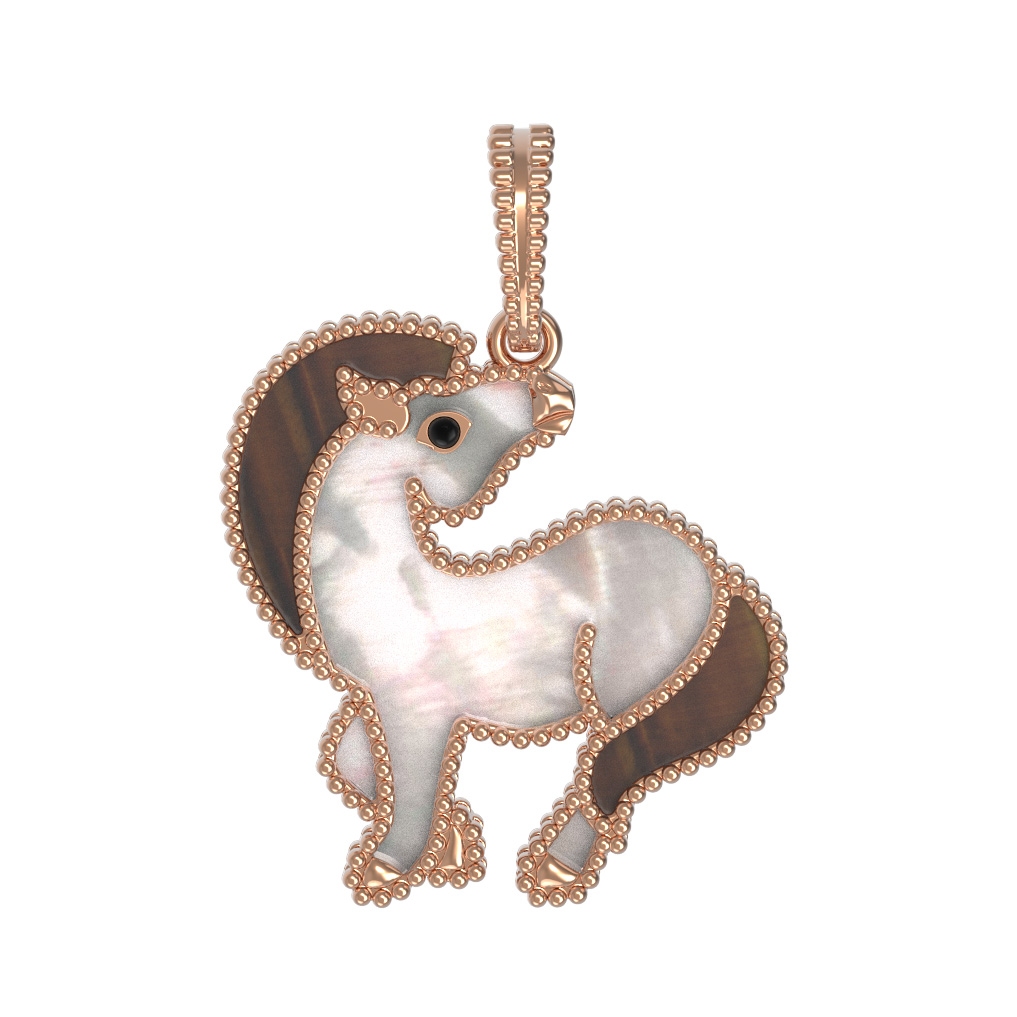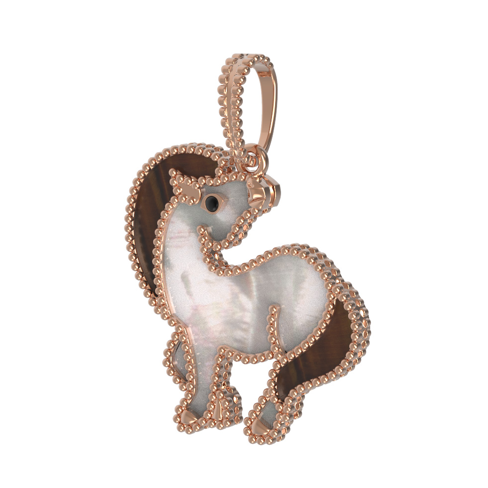Подвеска из золота c эмаль, тигровым глазом и перламутром