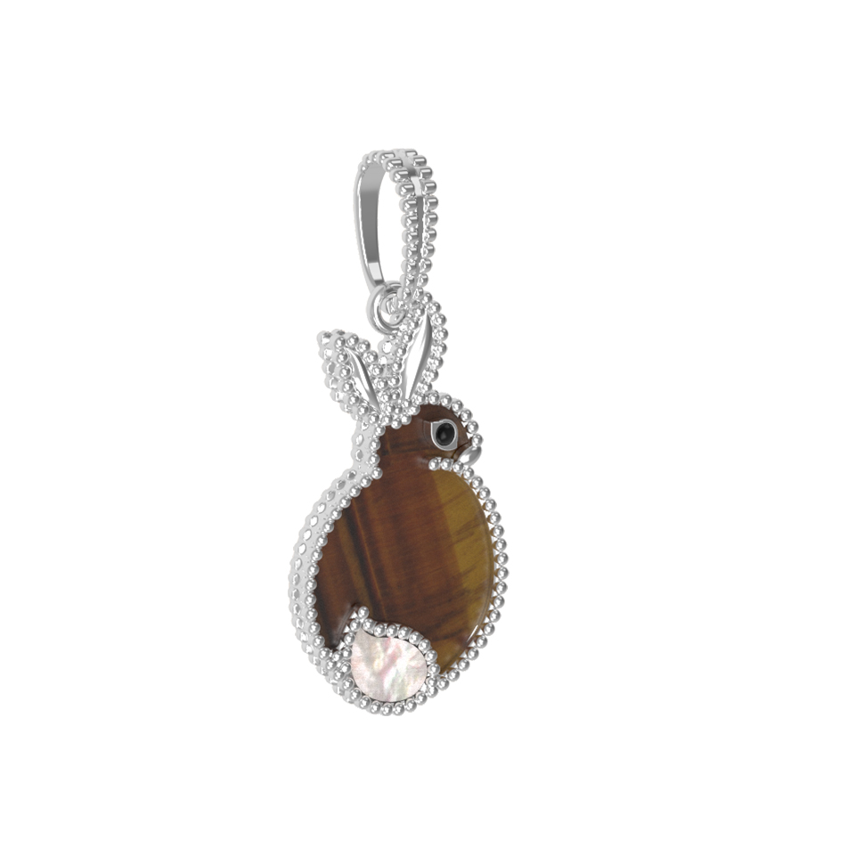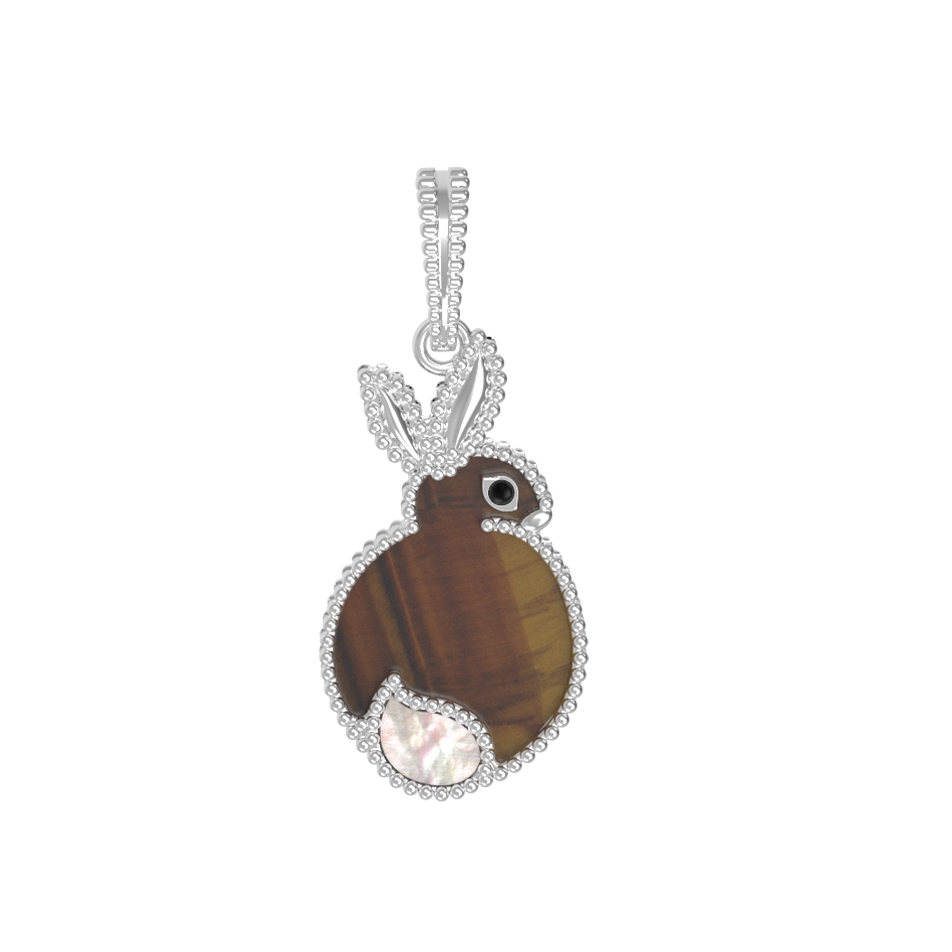 Подвеска из белого золота c эмаль, тигровым глазом и перламутром