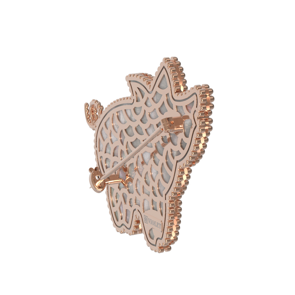 Брошь из золота c эмалью и перламутром