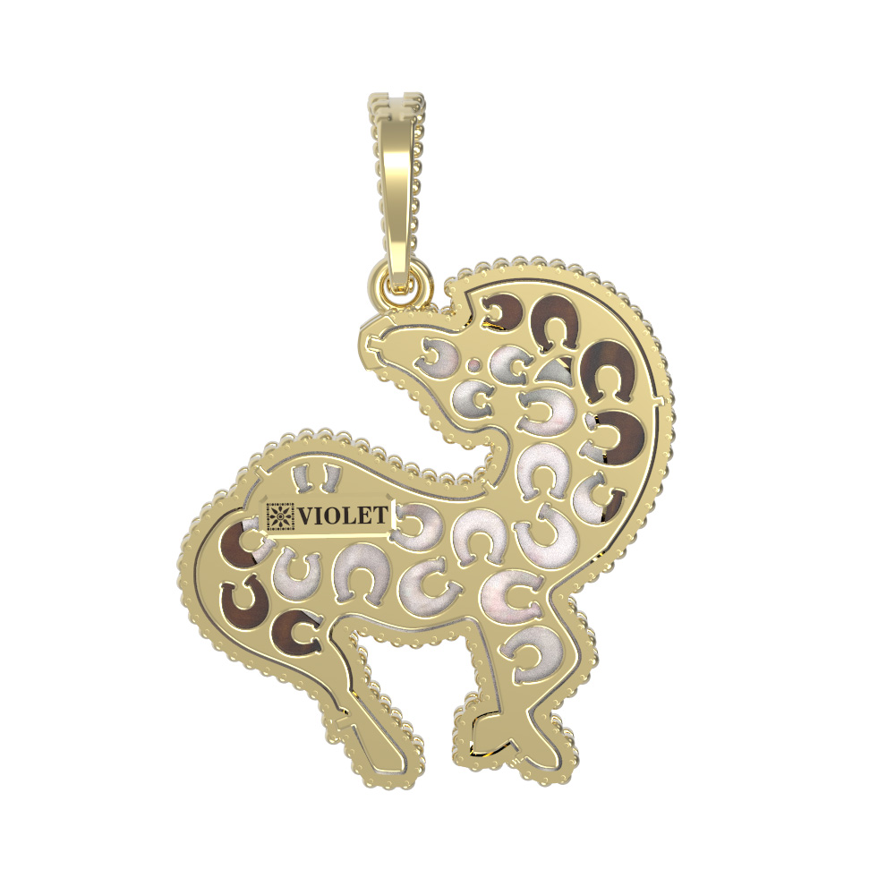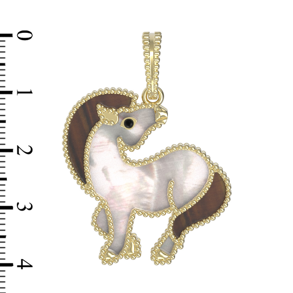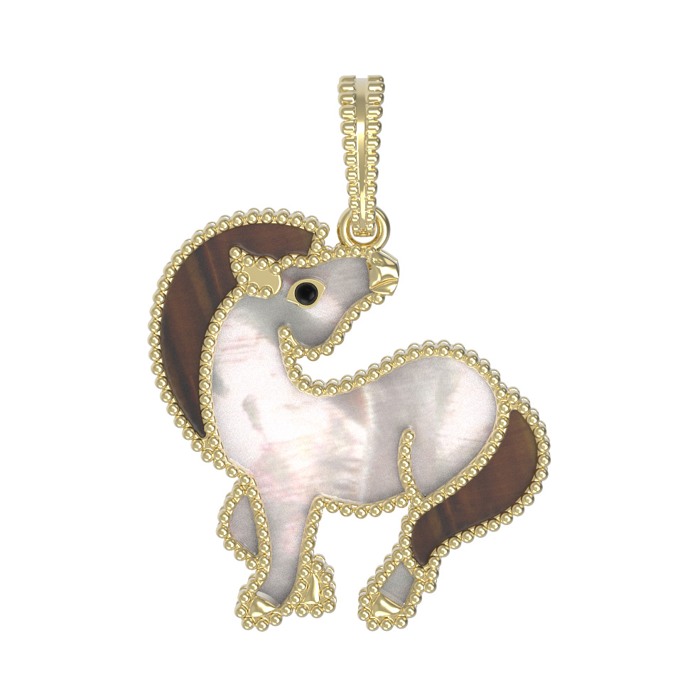 Подвеска из лимонного золота c эмаль, тигровым глазом и перламутром