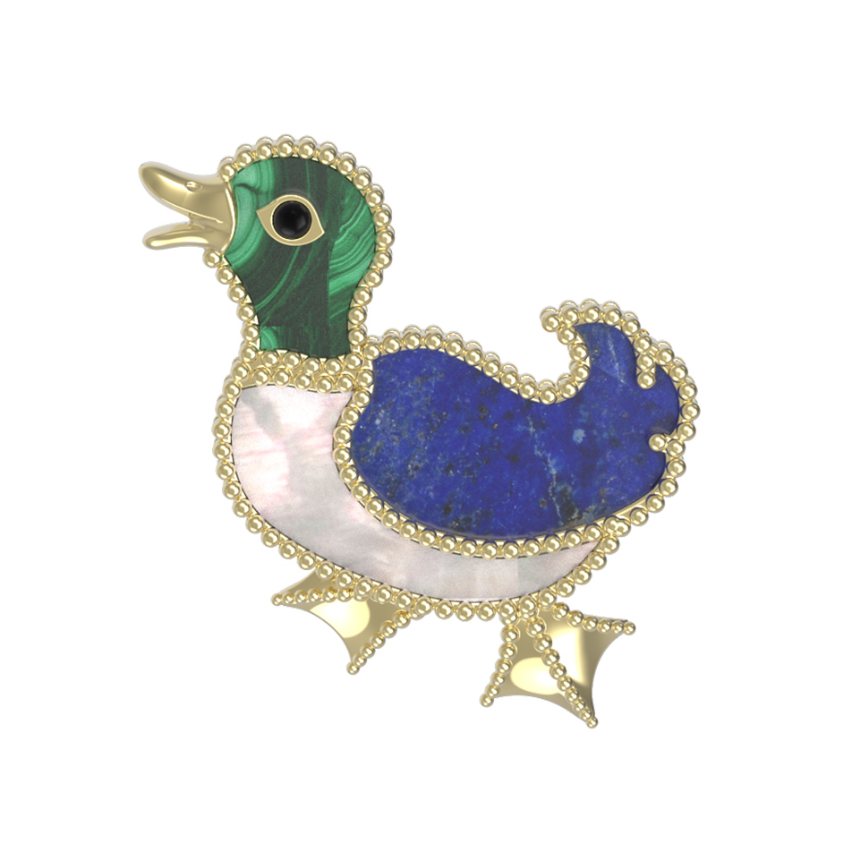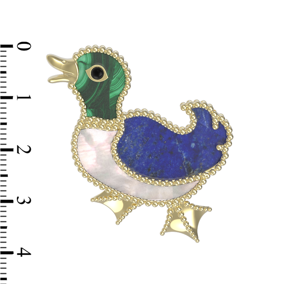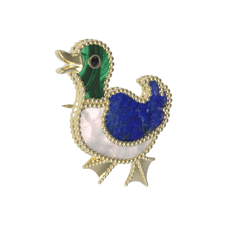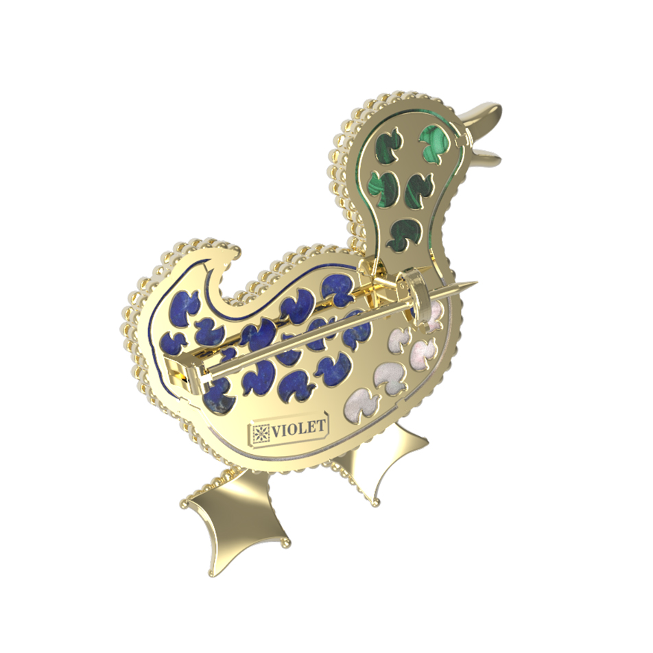 Брошь из лимонного золота c эмаль, лазуритом, малахитом и перламутром