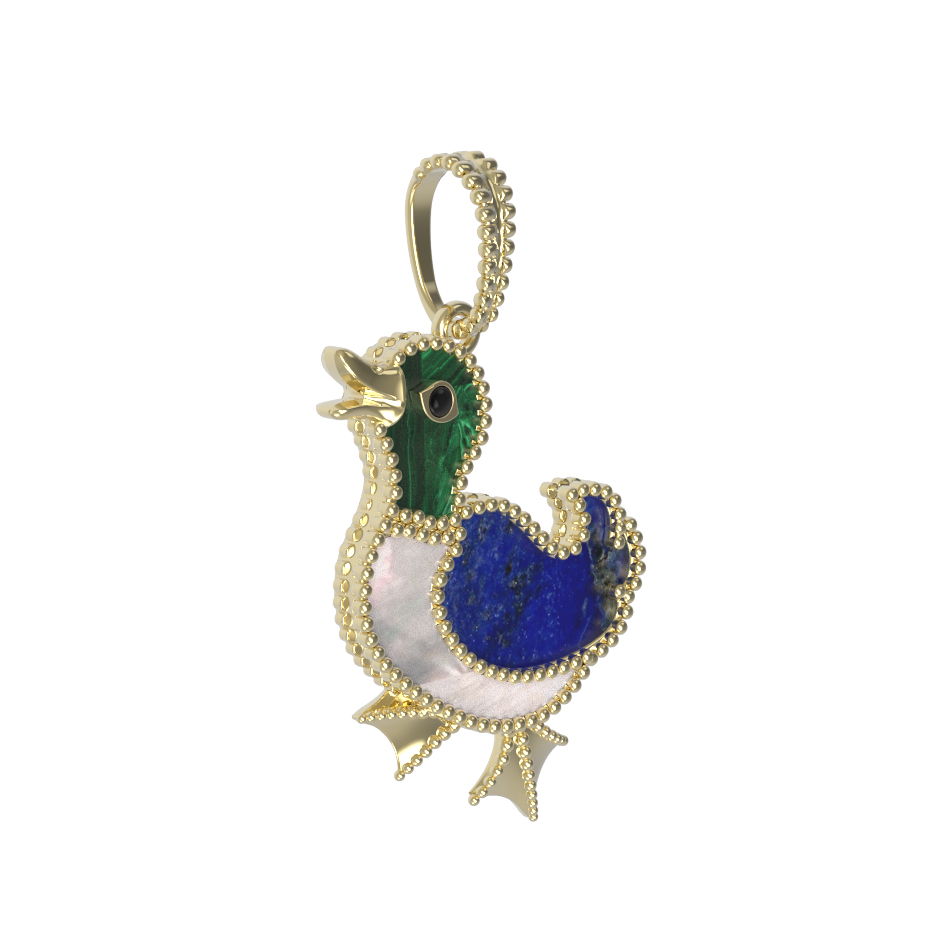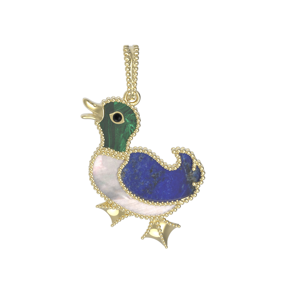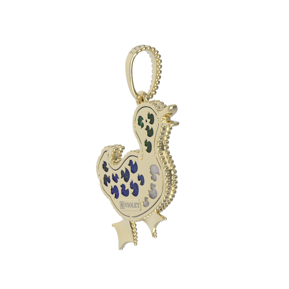Подвеска из лимонного золота c эмаль, лазуритом, малахитом и перламутром