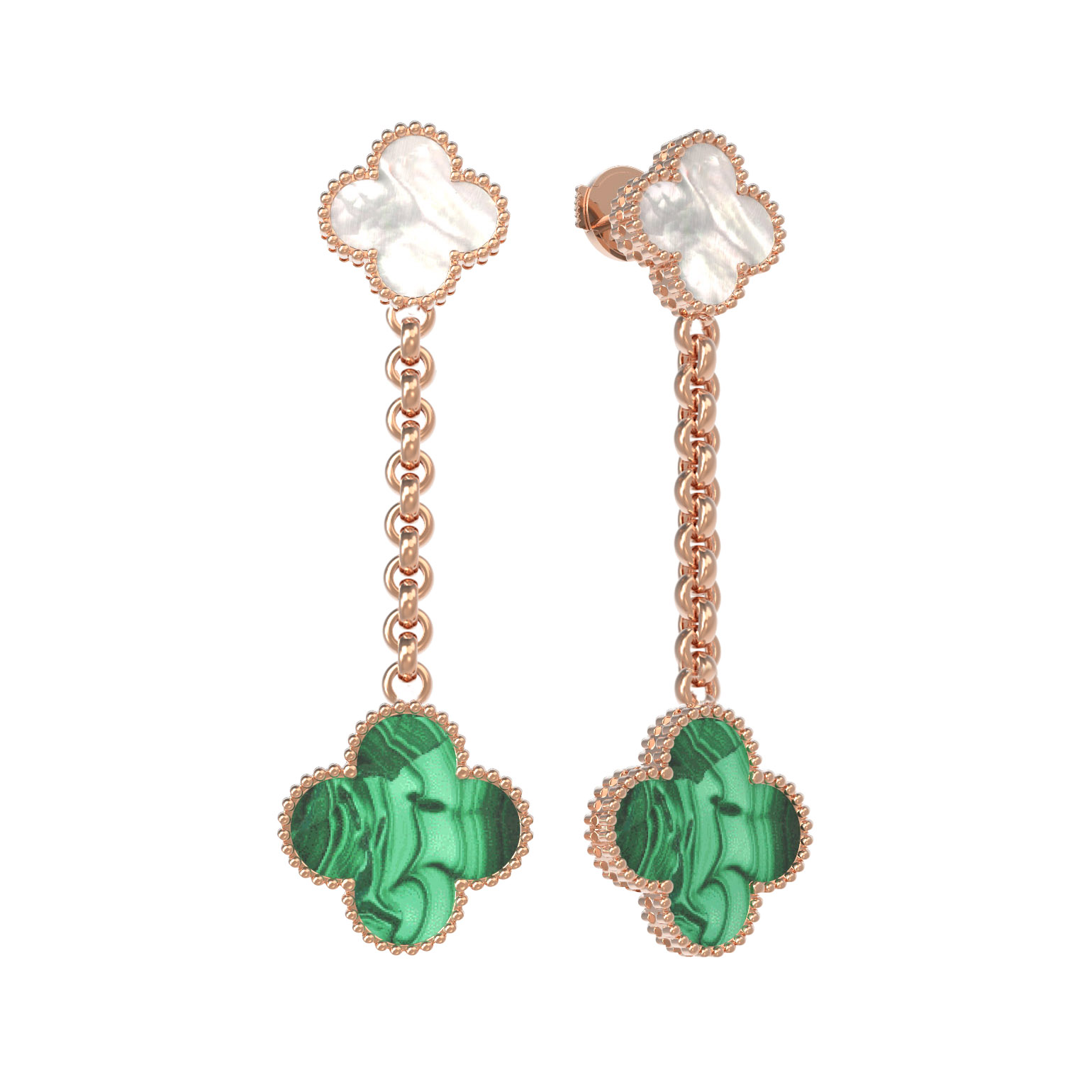 Серьги из золота c малахитом и перламутром