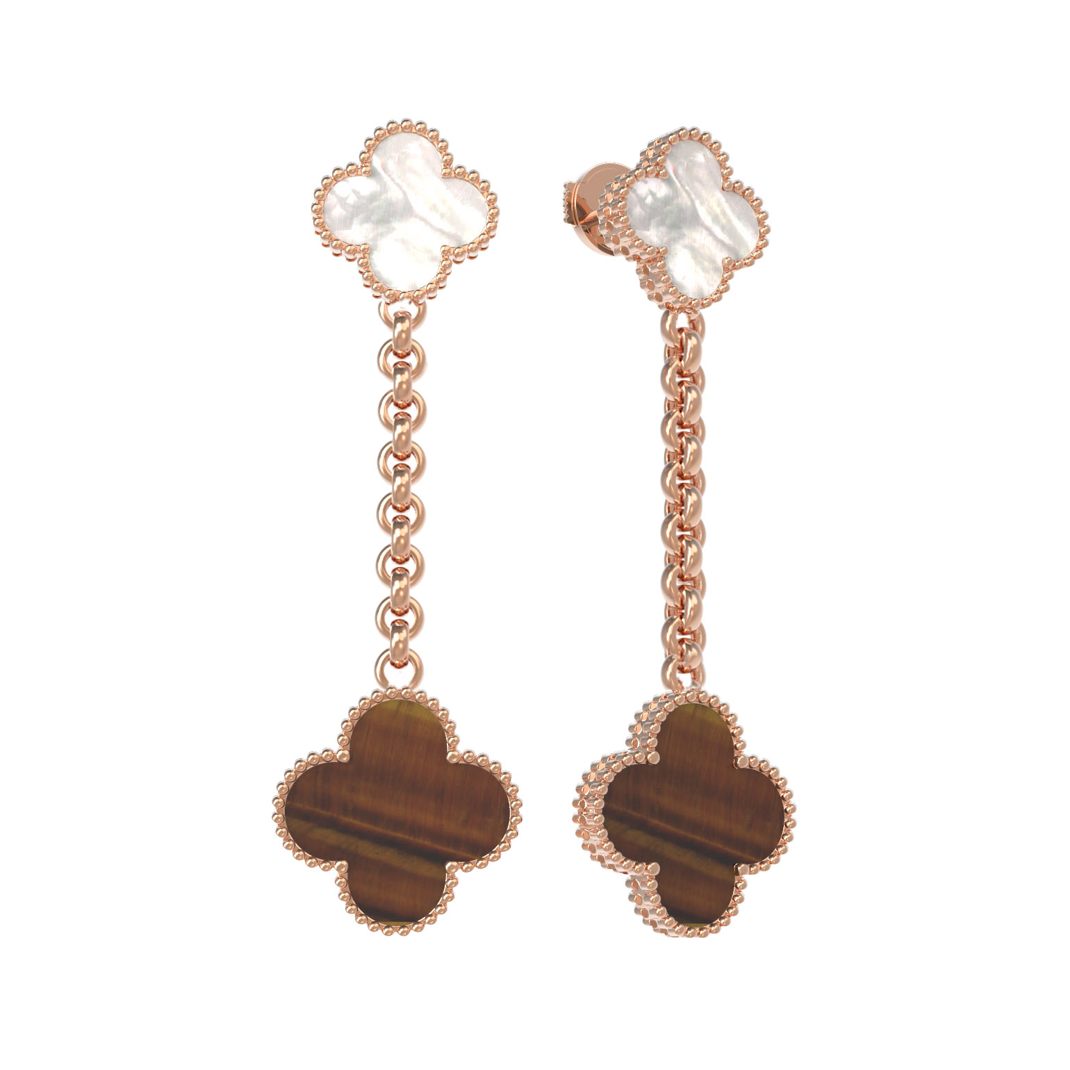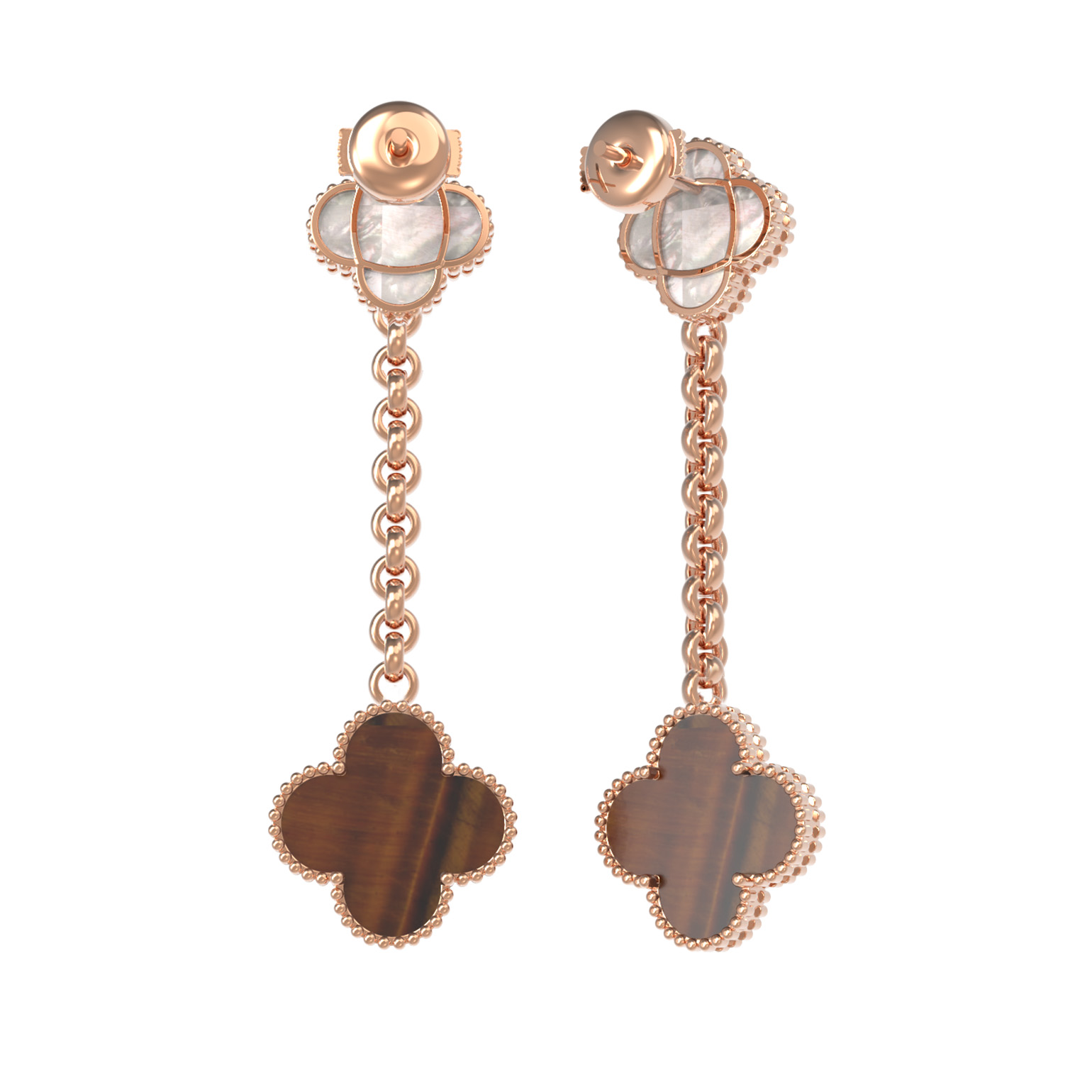 Серьги из золота c тигровым глазом и перламутром