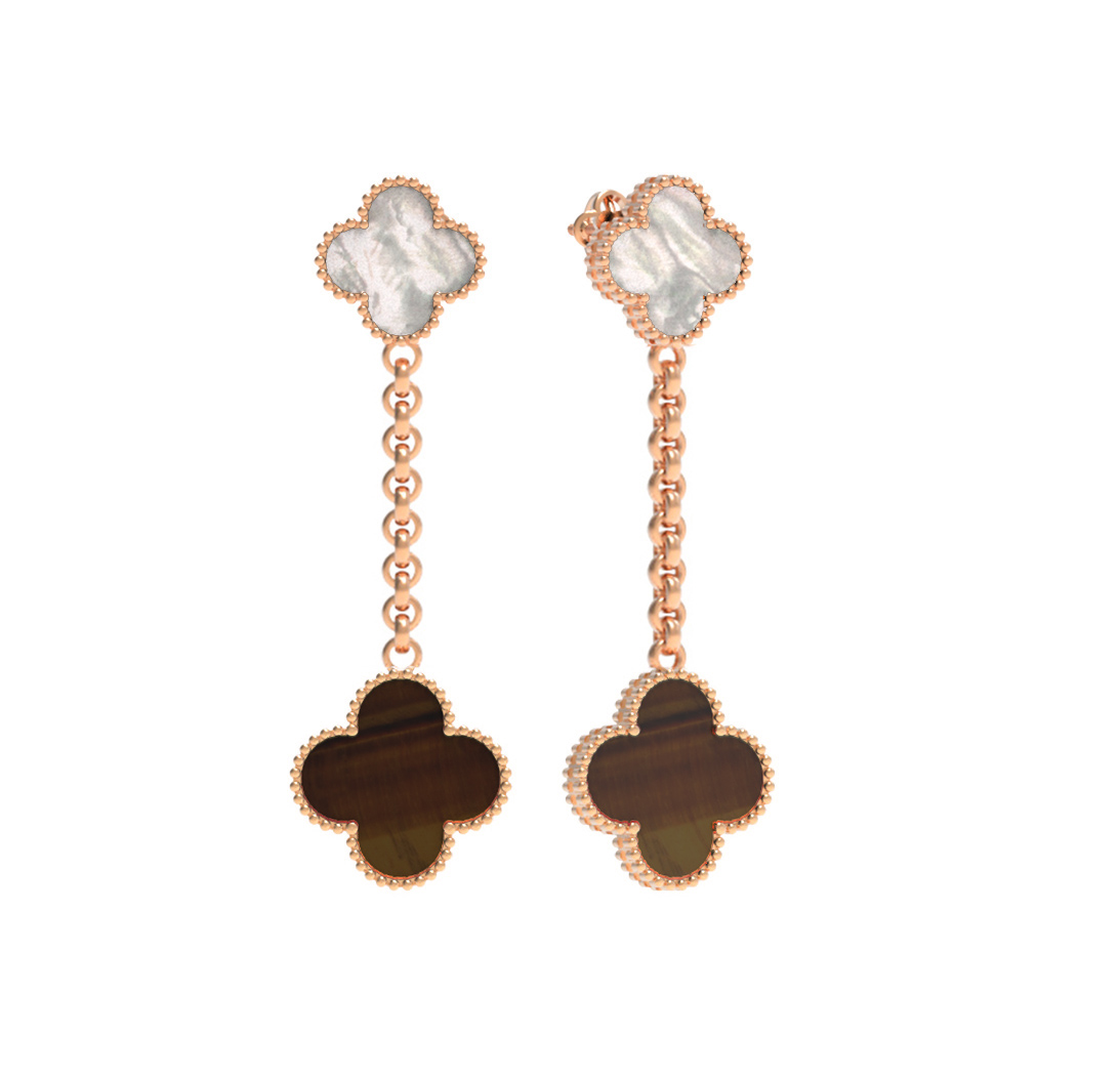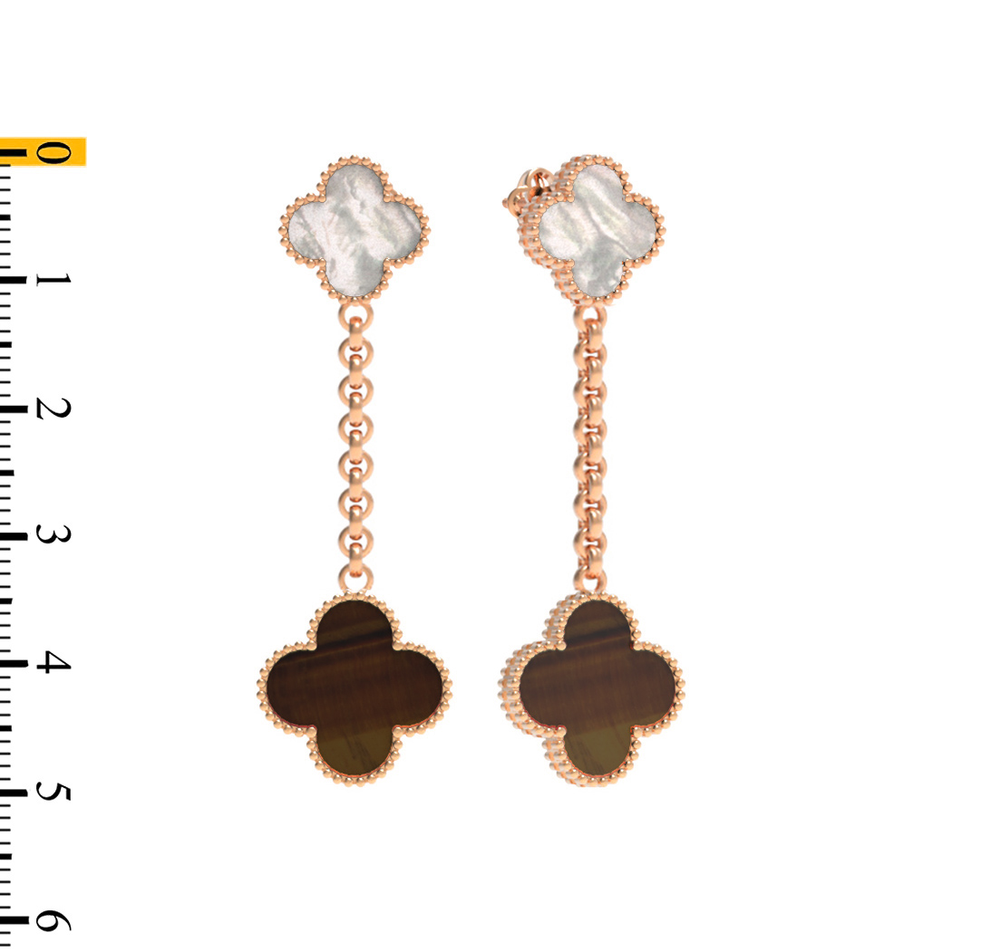 Серьги из золота c тигровым глазом и перламутром