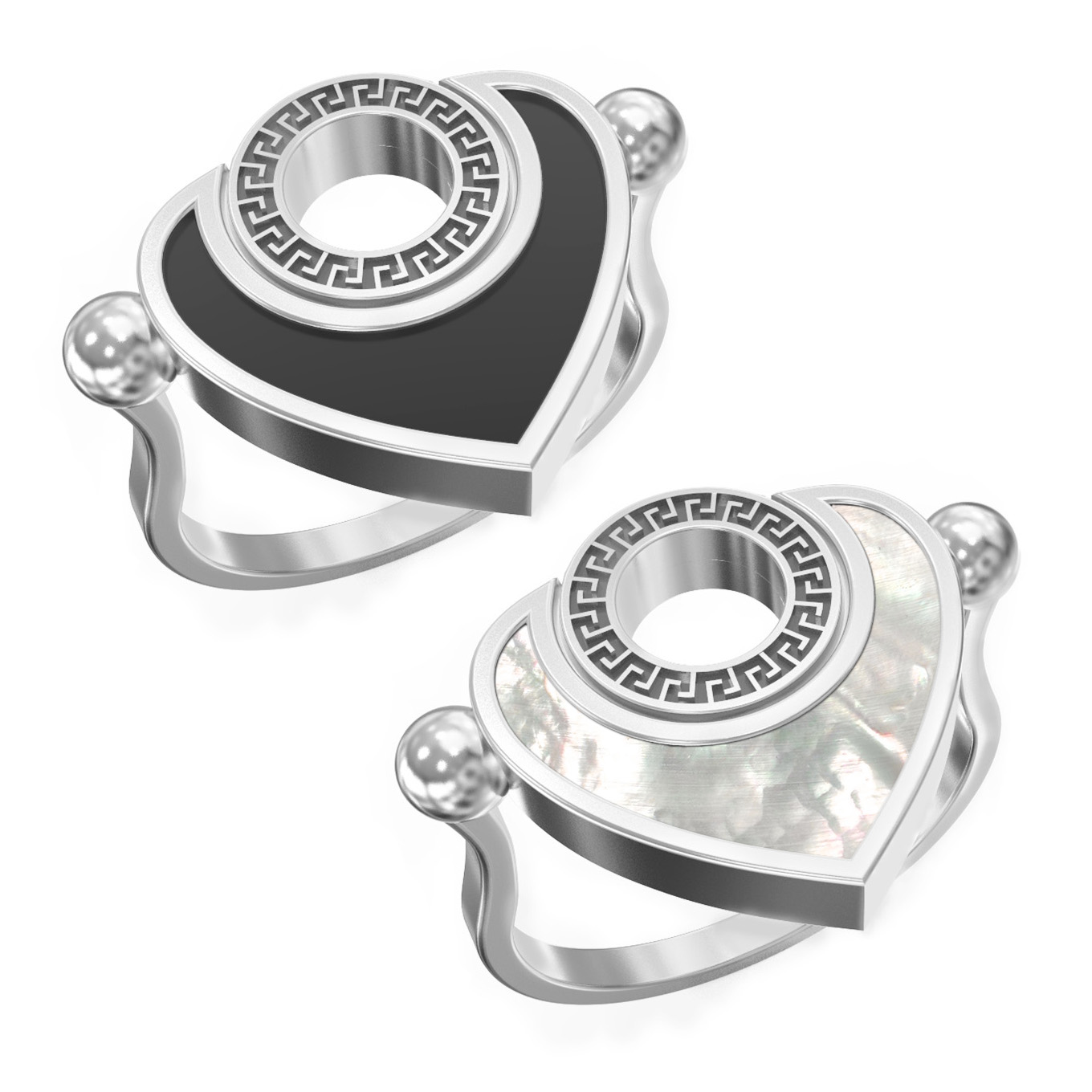 • Кольцо из белого золота c ониксом и перламутром