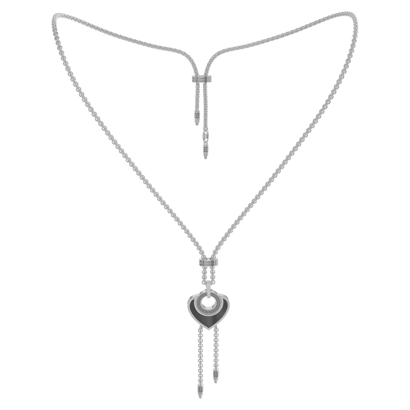 • Колье из белого золота c фианитом, ониксом и перламутром
