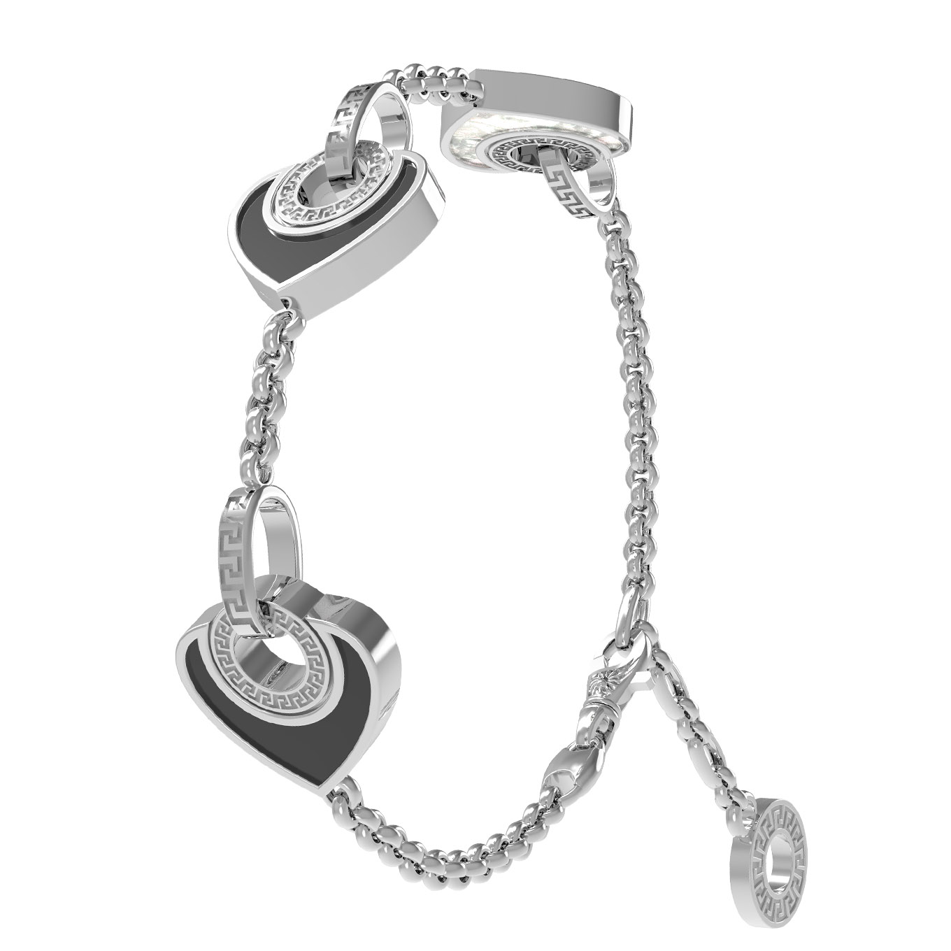 Браслет из белого золота c фианитом, ониксом и перламутром