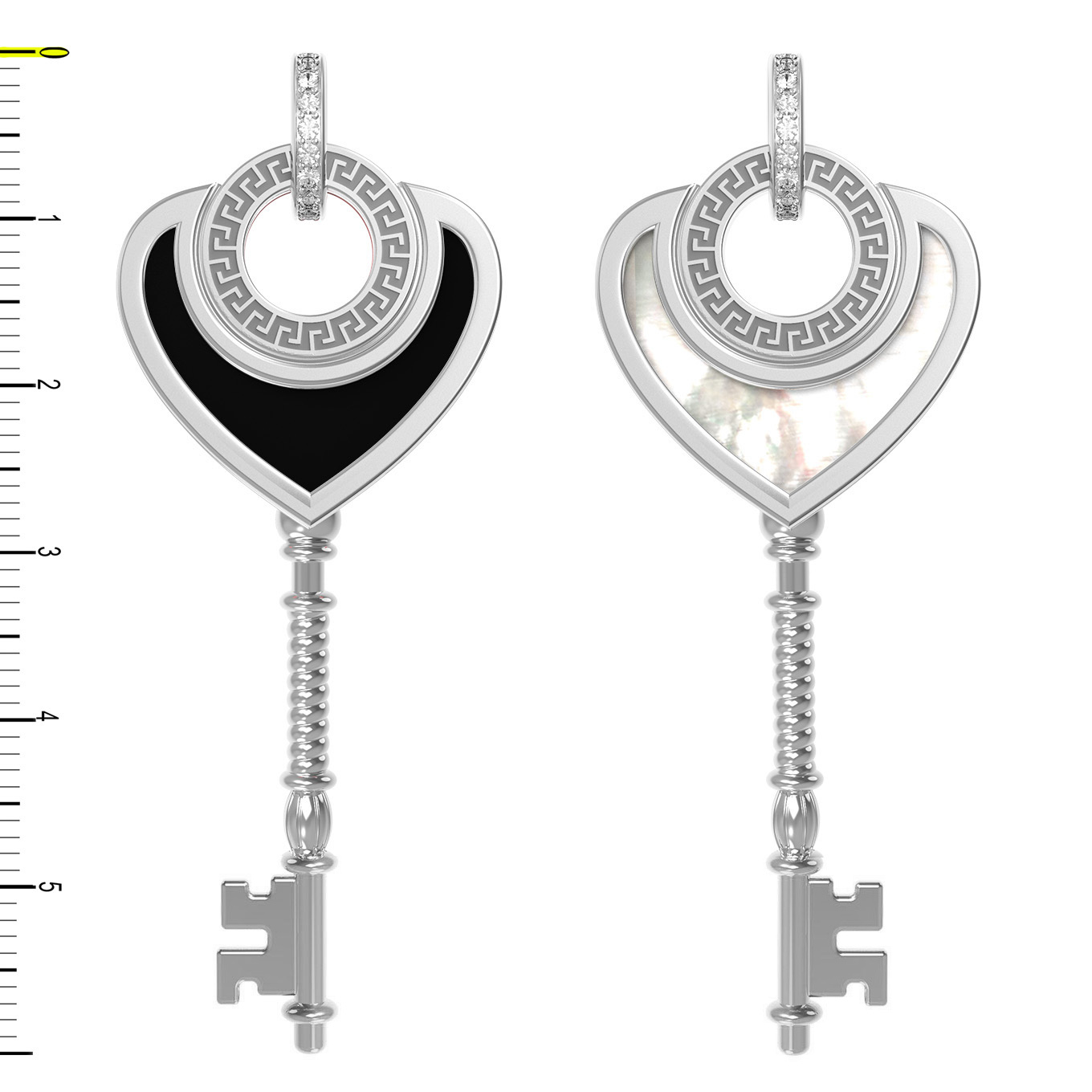 • Подвеска из белого золота c фианитом, ониксом и перламутром