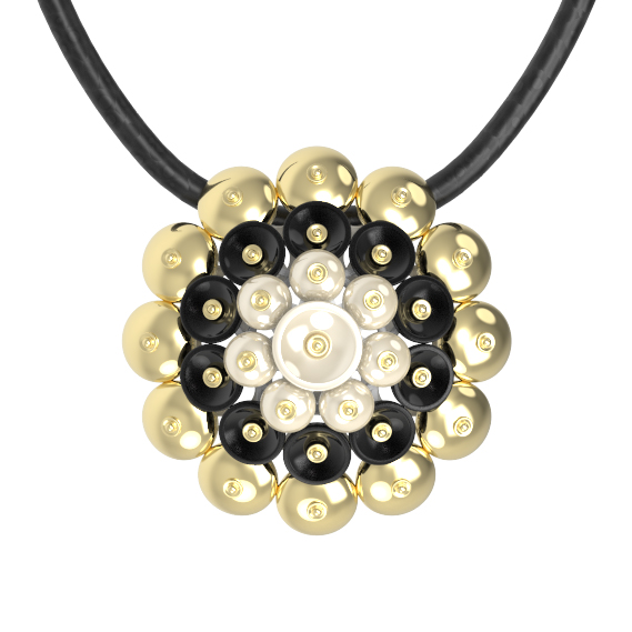 Подвеска из лимонного золота c ониксом и перламутром