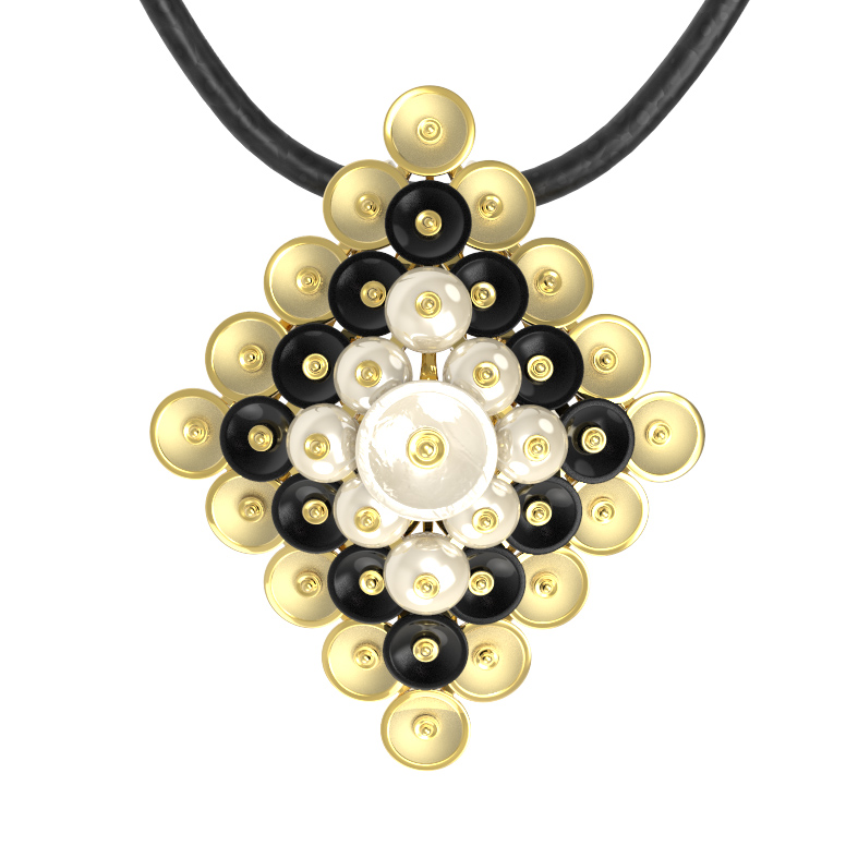 Подвеска из лимонного золота c ониксом и перламутром