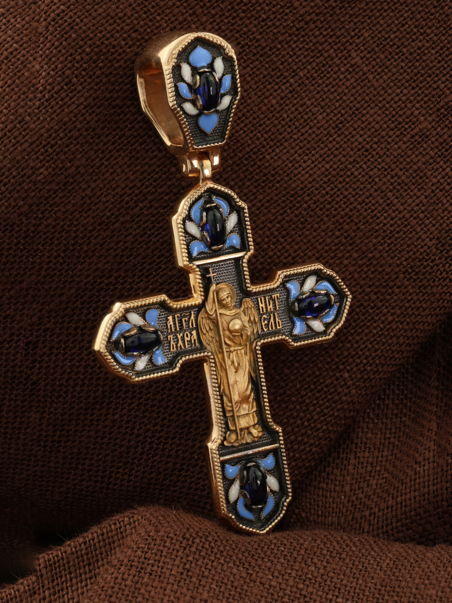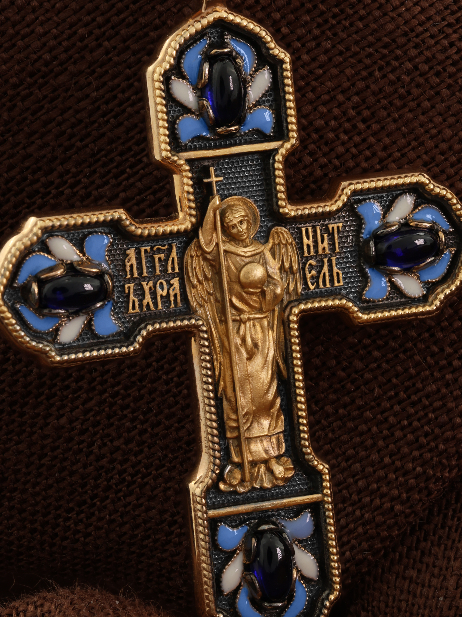 Основой композиции оборотной стороны является ростовое изображение Ангела Хранителя. Ангел, который дается каждому человеку в Крещении для попечения и защиты его души. Ангел Хранитель неотступно находится рядом с человеком, помогая, оберегая и наставляя его, а после смерти сопровождает его душу через мытарства.