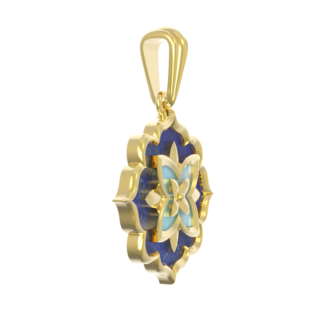 Подвеска из лимонного золота c бирюзой и лазуритом