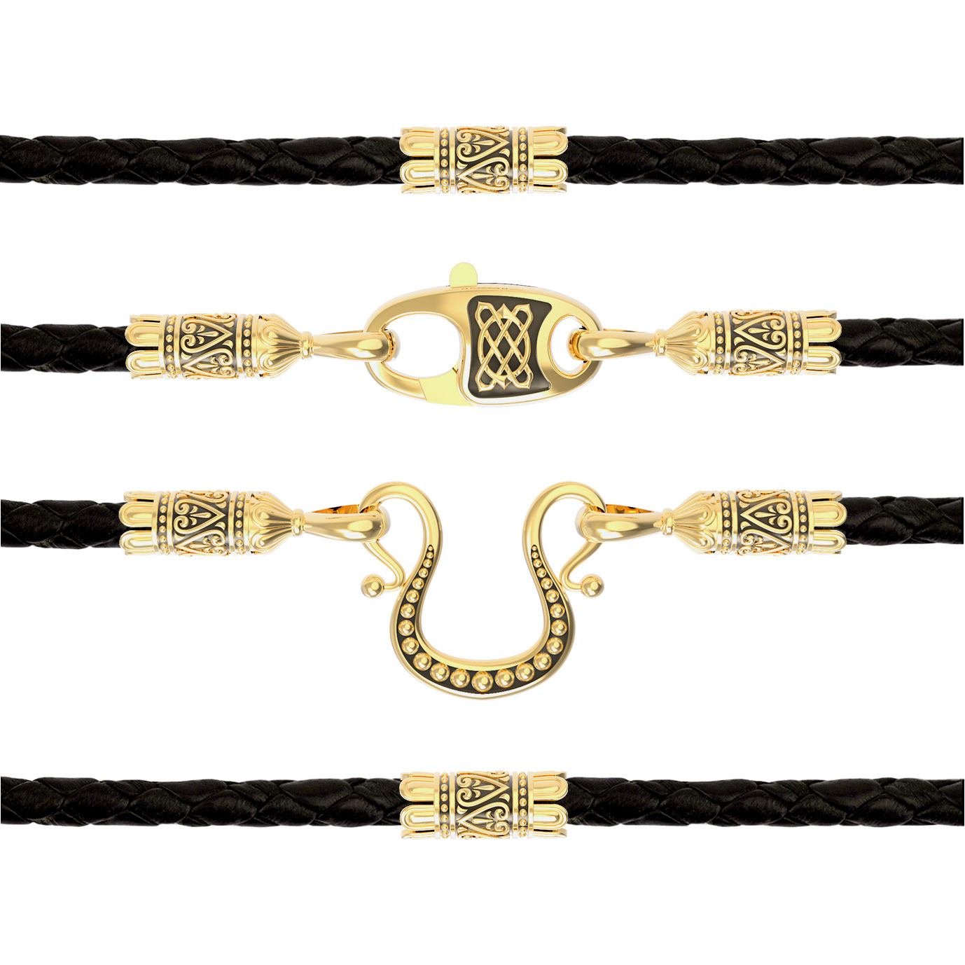 Шнурок кожаный из лимонного золота c кожаным шнурком