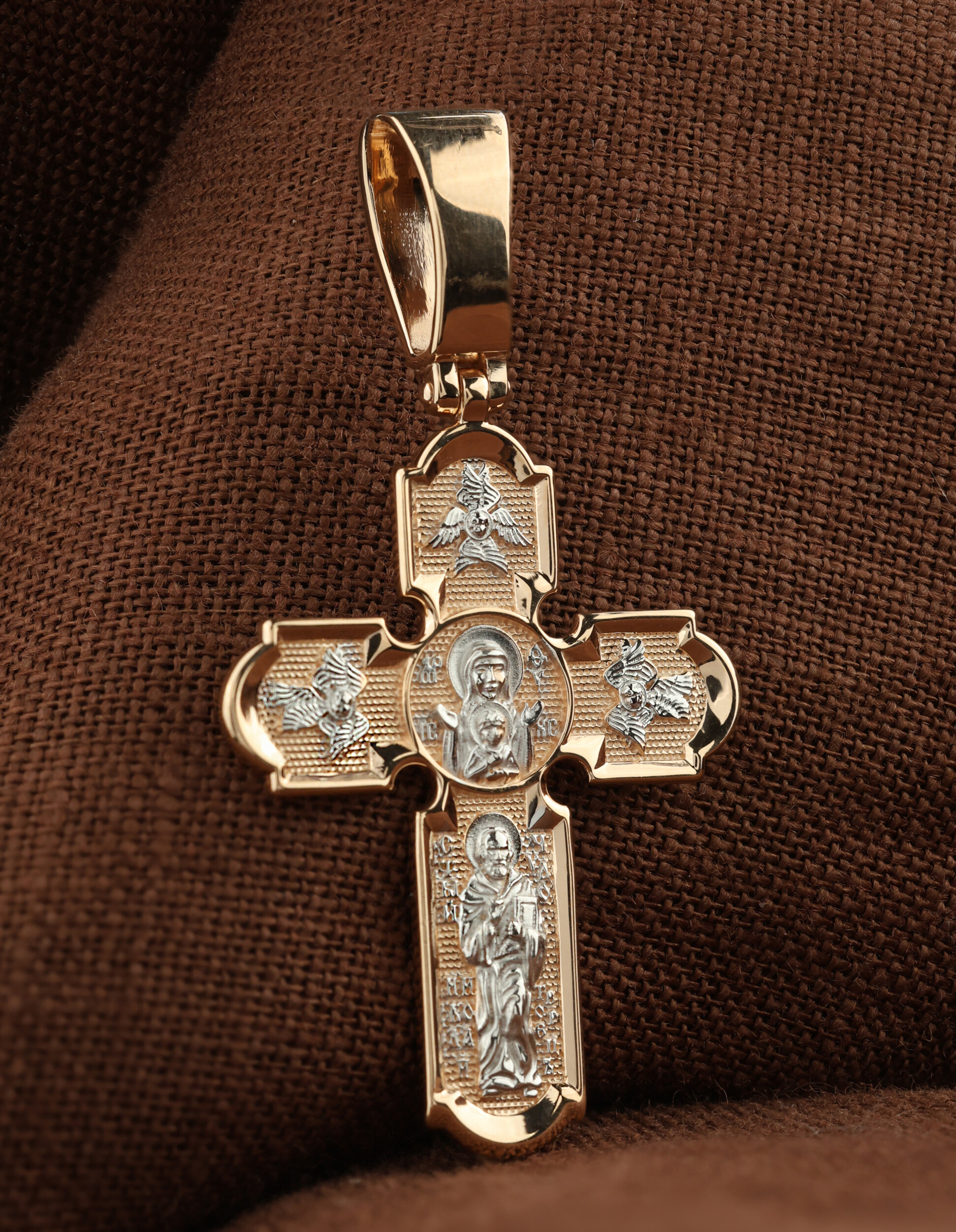 У основания креста в полный рост изображен самый любимый святой Православной Церкви — Николай Чудотворец. Святой почитается как целитель болезней, покровитель путешествующих, особенно по морю, помощник в торговле, учебе, а также в поисках достойного супруга.