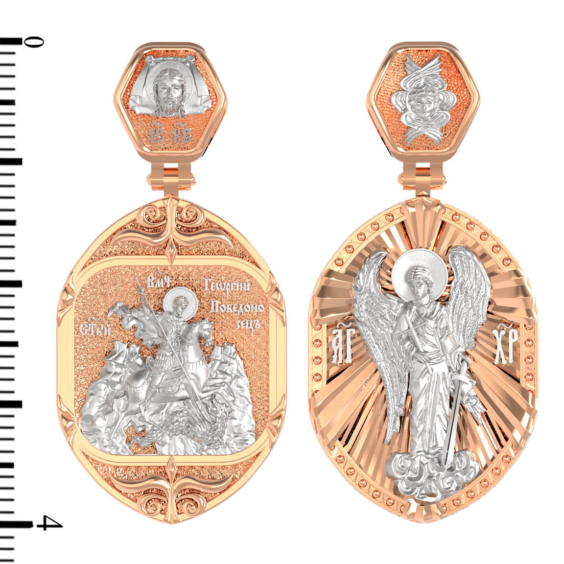 Основой композиции лицевой стороны является изображение Святого Георгия Победоносца.