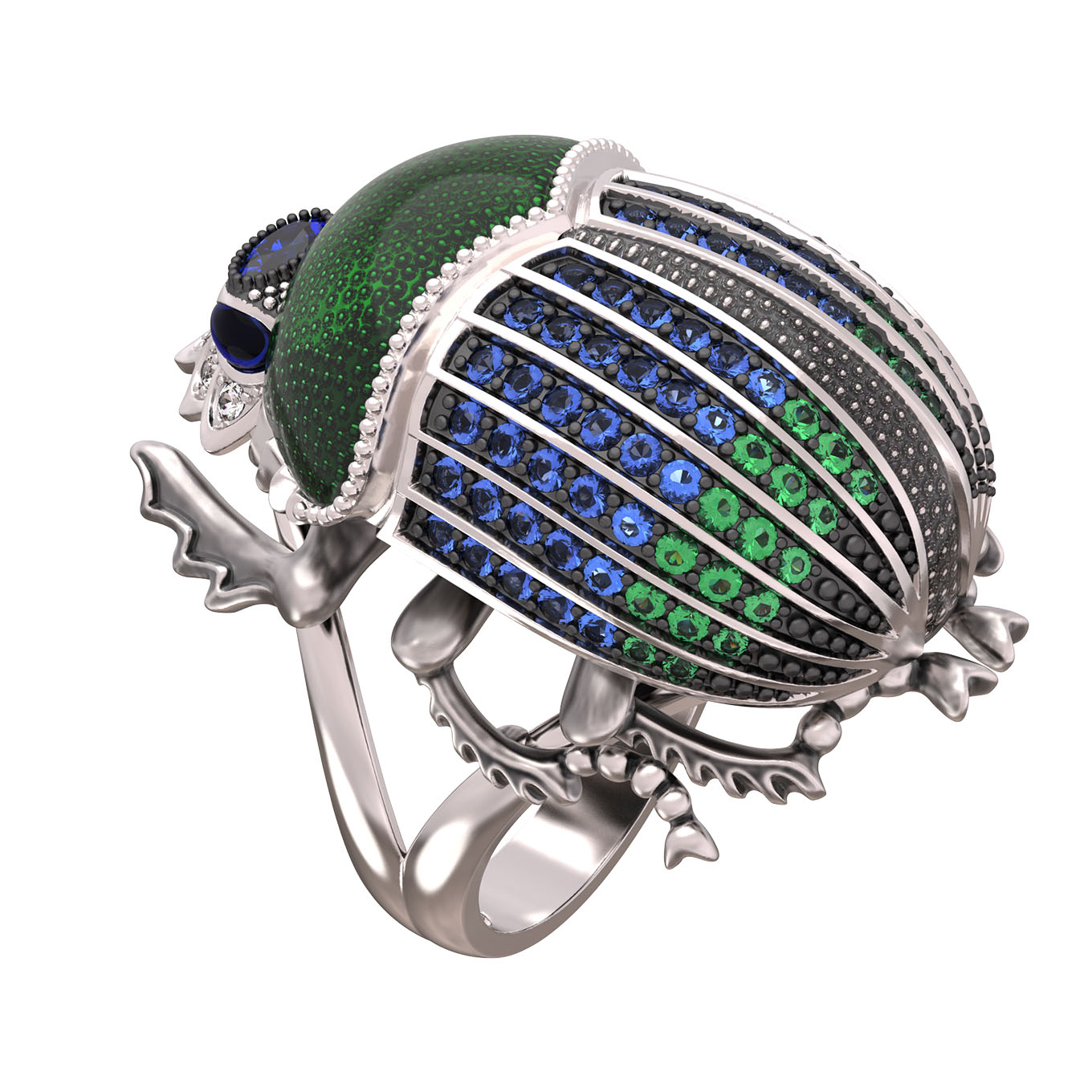 Кольцо из белого золота c эмаль, фианитом и сапфиром