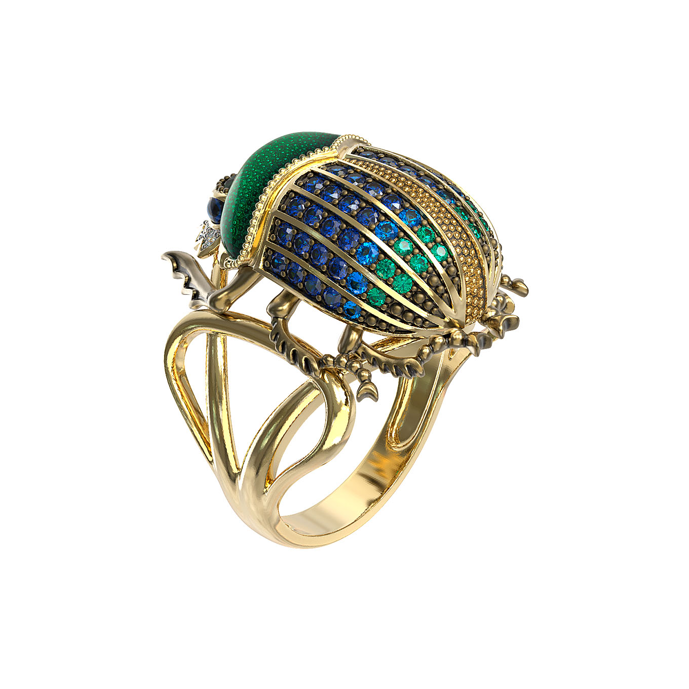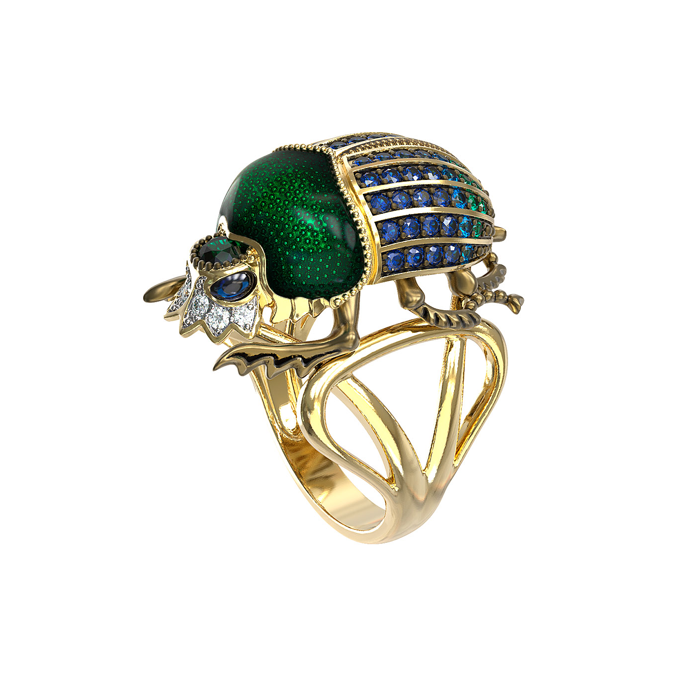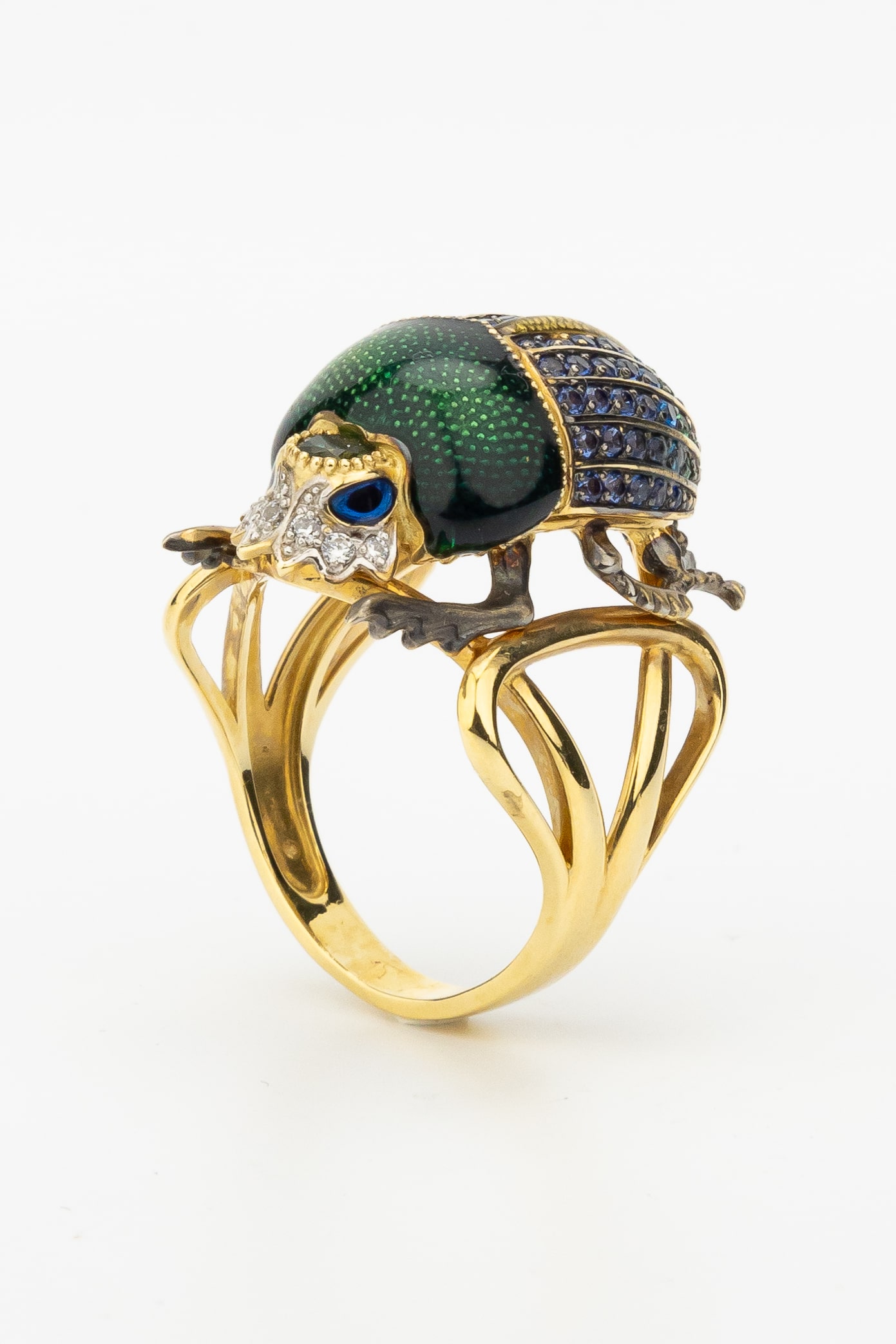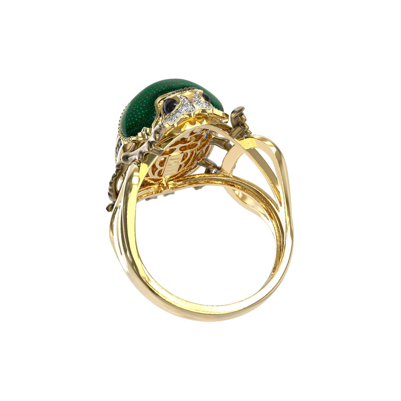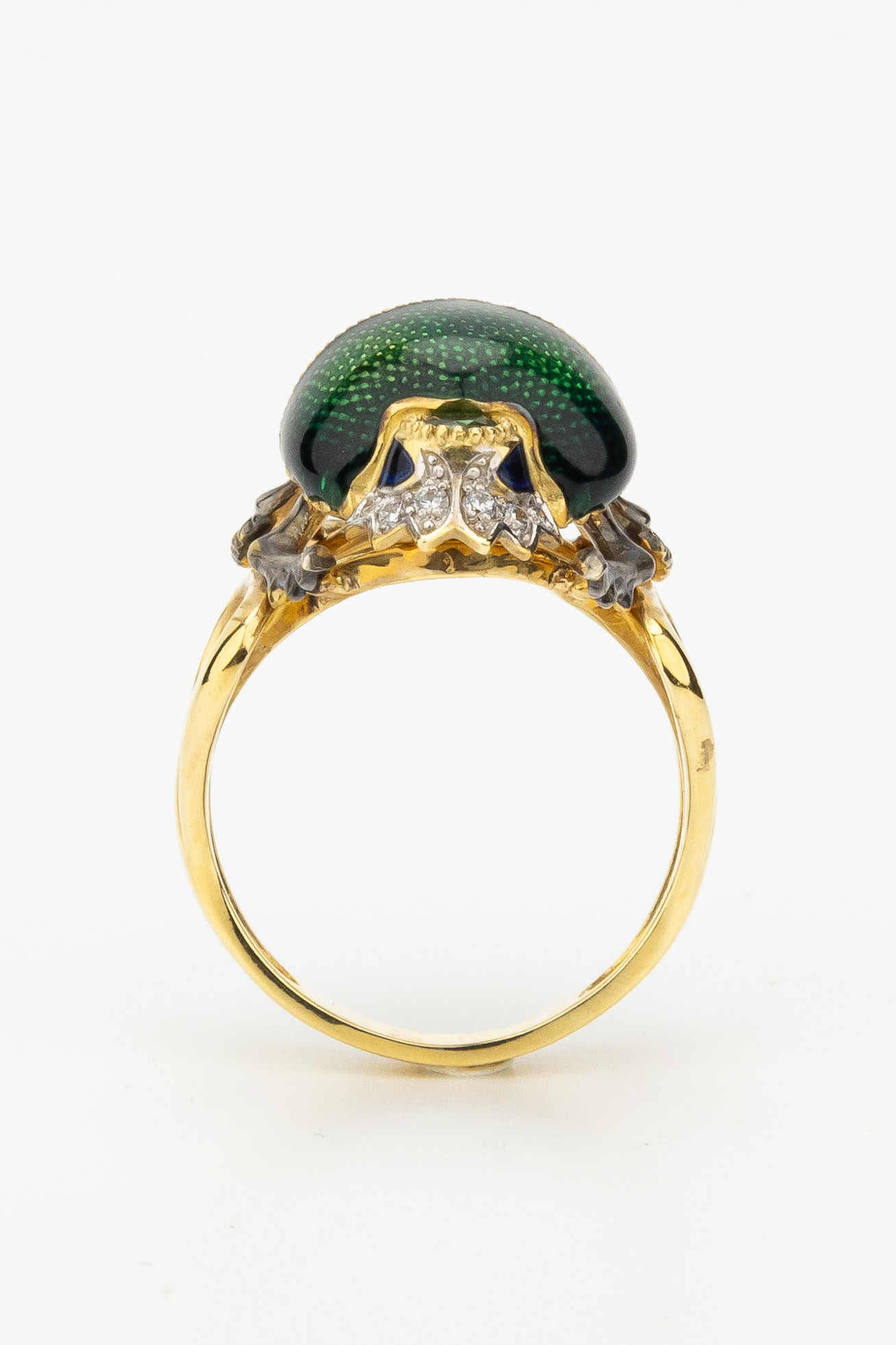 Кольцо из лимонного золота c эмаль, фианитом и турмалином