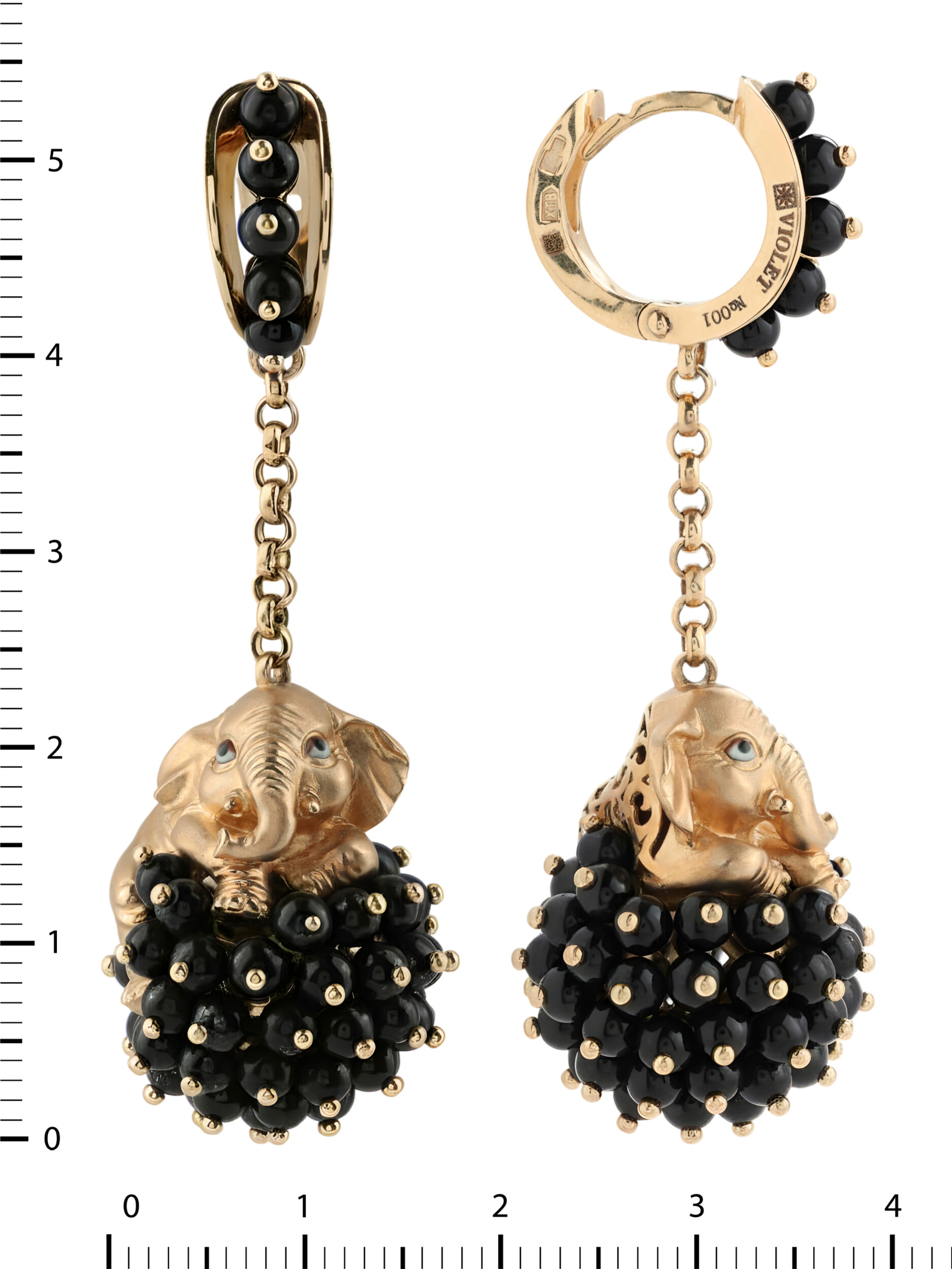 Серьги из золота c эмаль и ониксом